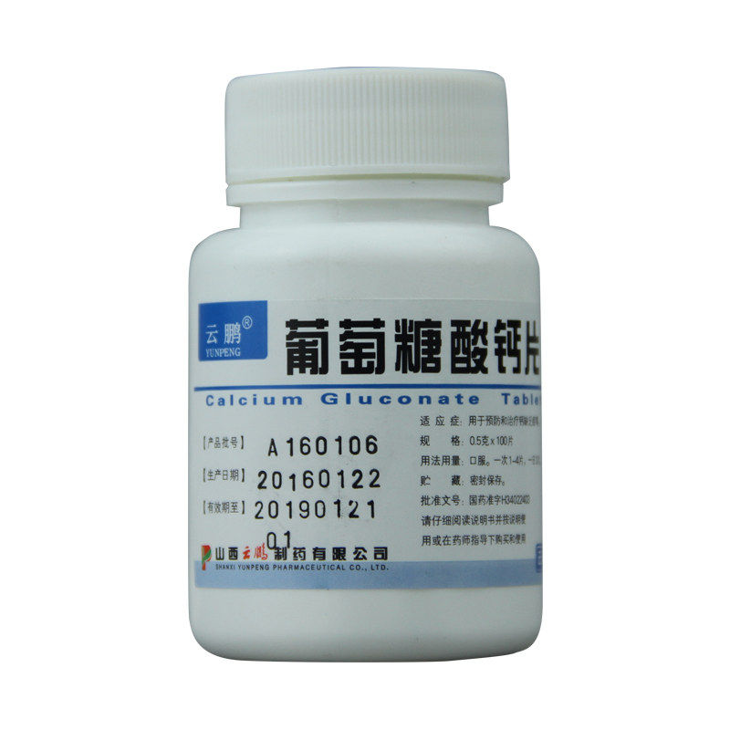葡萄糖酸钙片 效期至2028年4月14日 0.5g 瓶 100片 云鹏