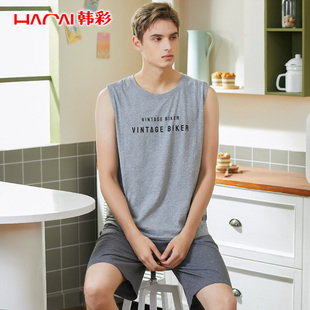 青少年无袖 男款 家居服套装 男士 薄款 纯棉背心薄款 夏天男式 睡衣夏季