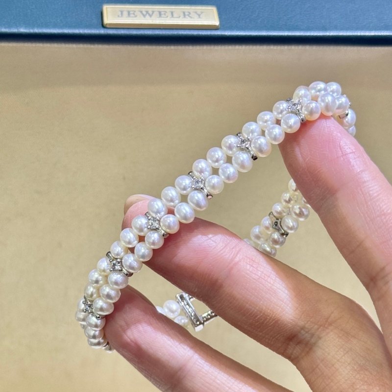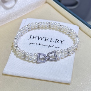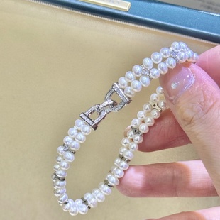 爆款 手链双D扣双排淡水珍珠手串强光微瑕高品质百搭轻奢高级手链