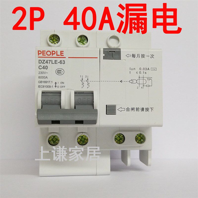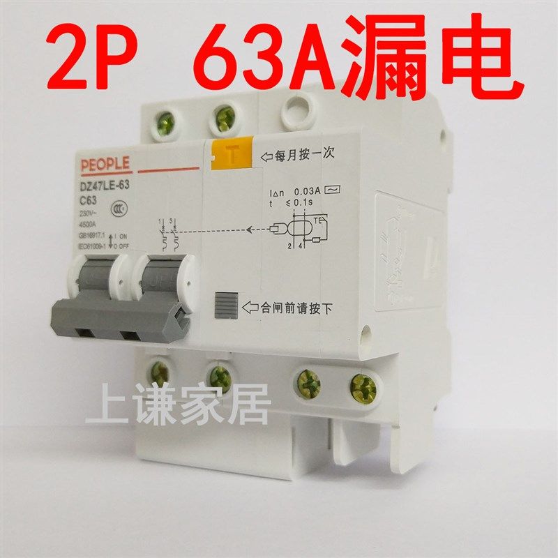 德力西空气开关断路器家用漏电保护器2P63a电闸总空开带漏电保护