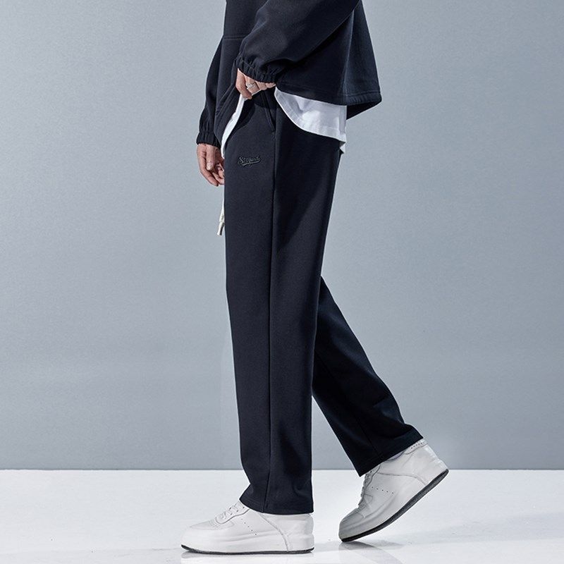 宽松黑色休闲裤 加绒卫裤 子女秋冬运动裤 灰色弯刀裤 长裤 oneup美式