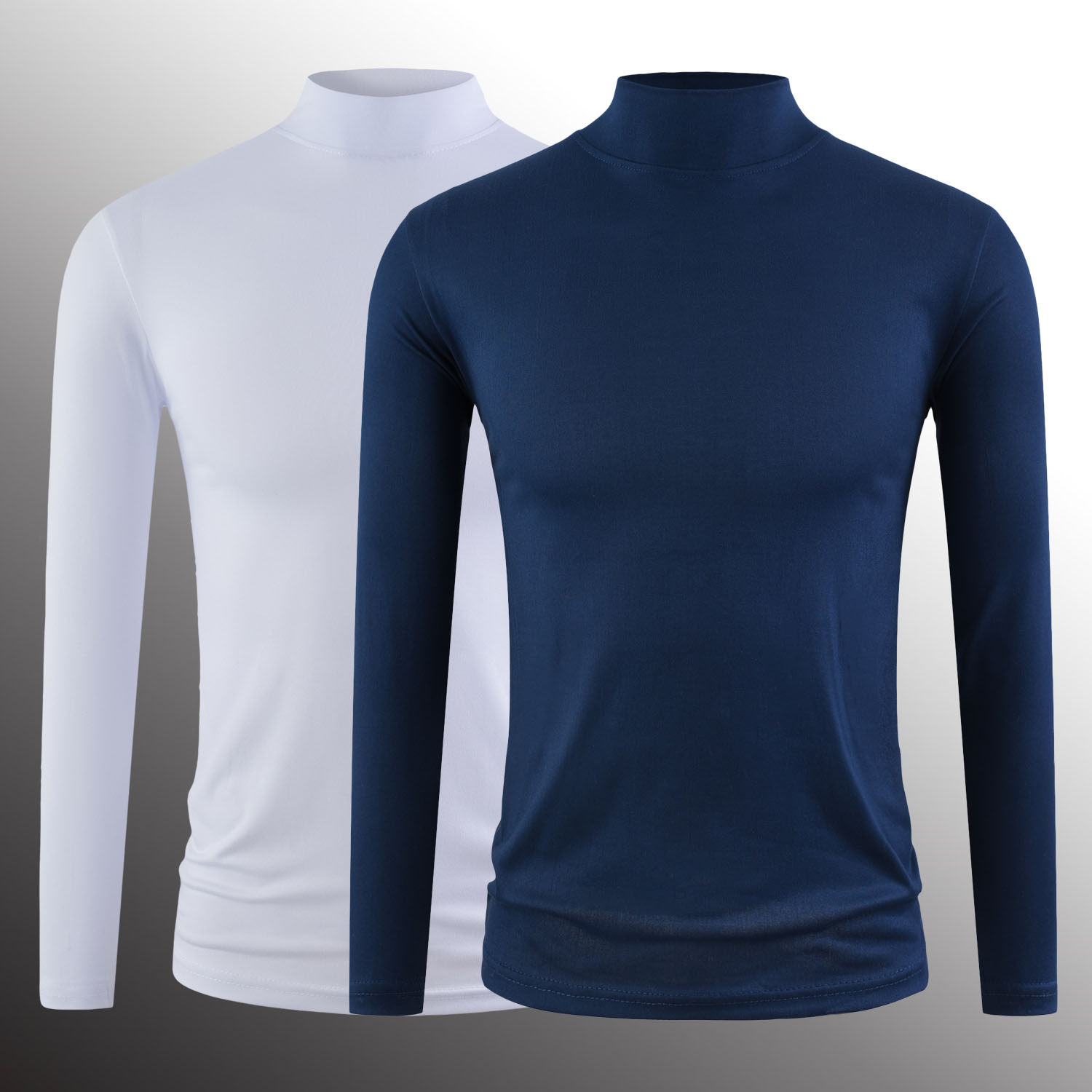 打底衫 薄款 长袖 修身 内搭上衣服 T恤2026春夏季 莫代尔棉半高领男士