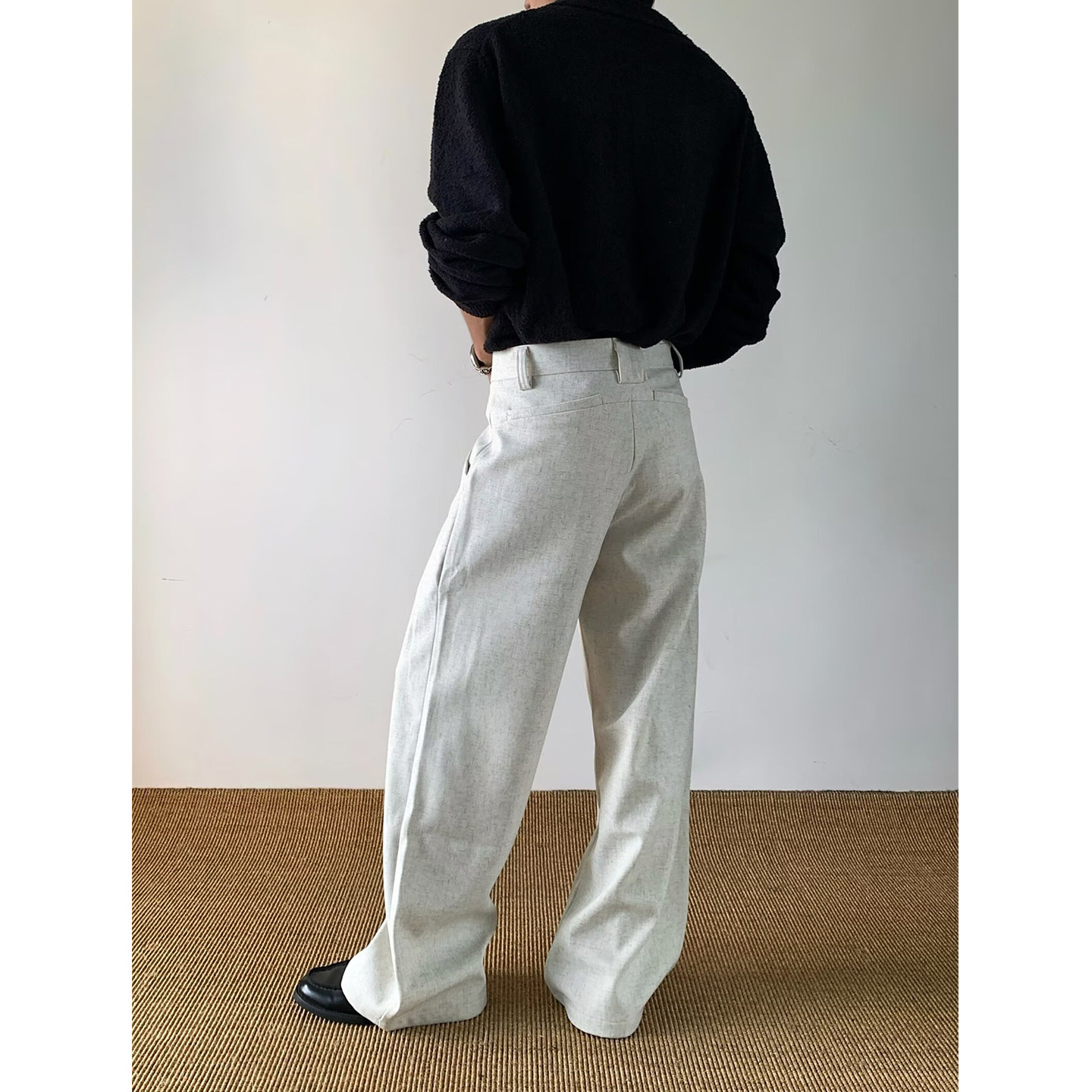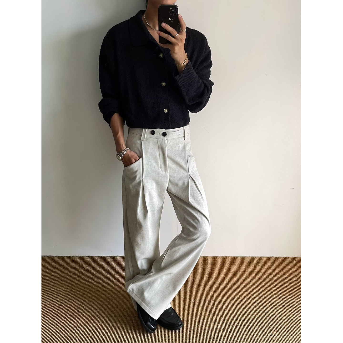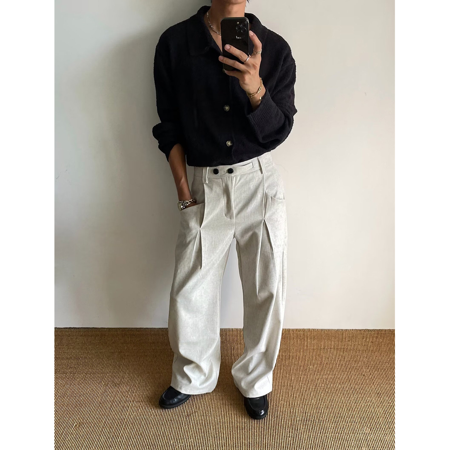 男女宽松直筒阔腿褶皱垂感休闲弯刀裤 裤 vintage风 高级感西装 美式