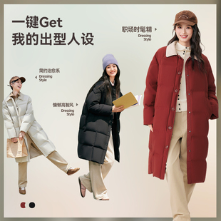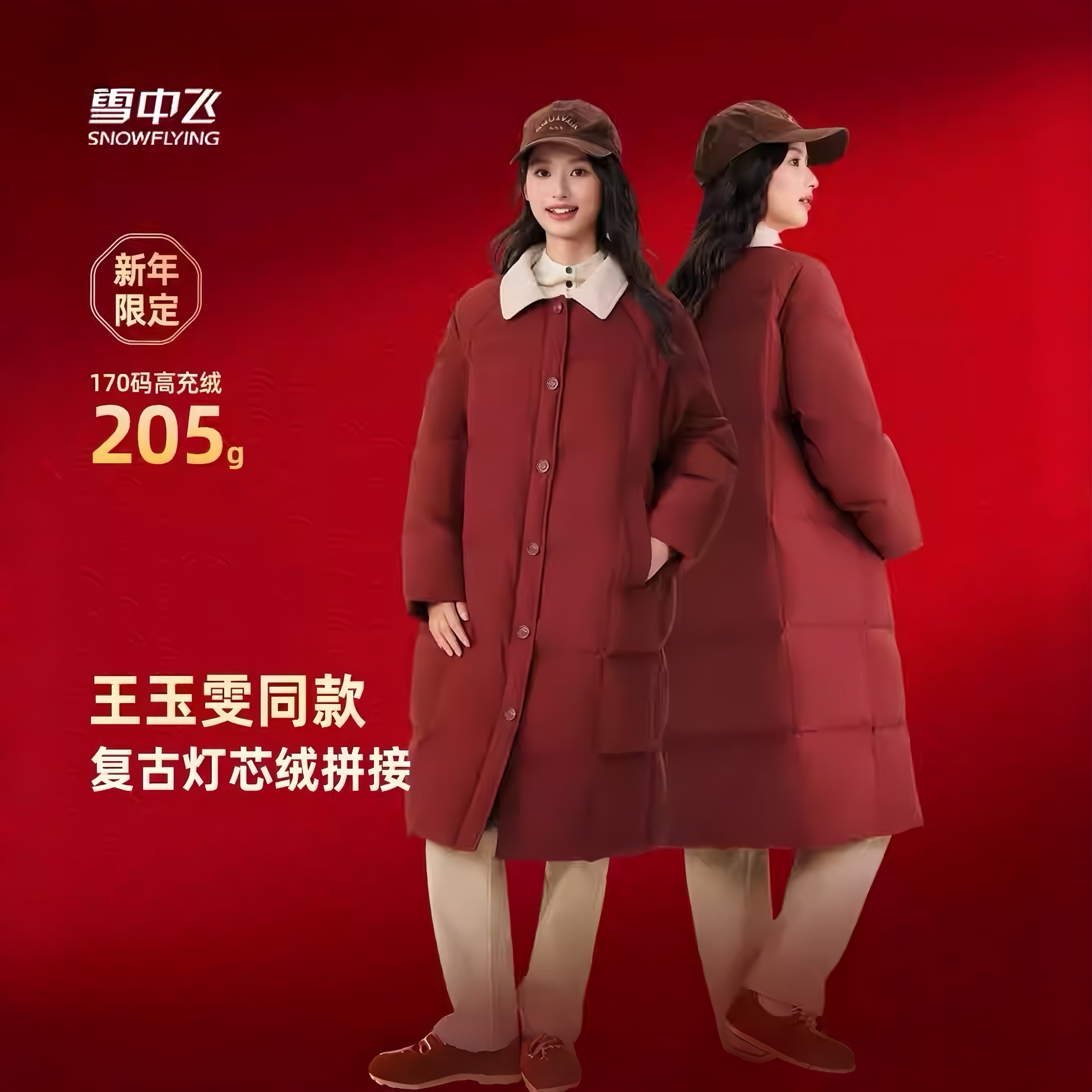 雪中飞女士翻领巴恩风长款 西野红 羽绒服新年 蜜蜂惊喜社