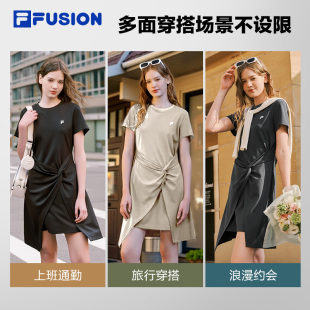 不规则下摆T恤裙 新款 FILA FUSION斐乐潮牌女子针织连衣裙2026春季