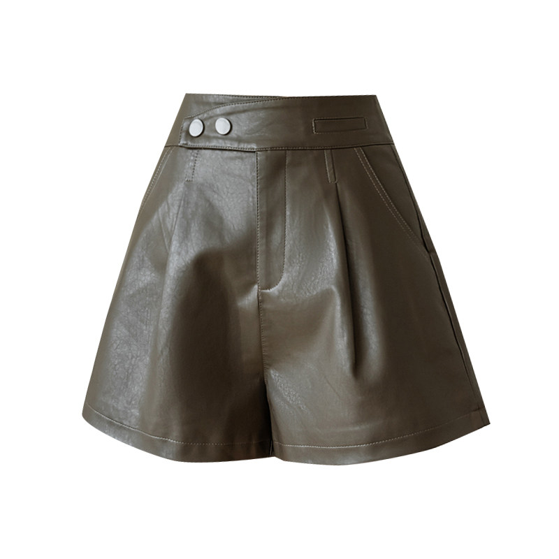 宽松开叉显瘦外穿a字阔腿靴裤 有货PU皮裤 女冬新2025休闲高腰短裤