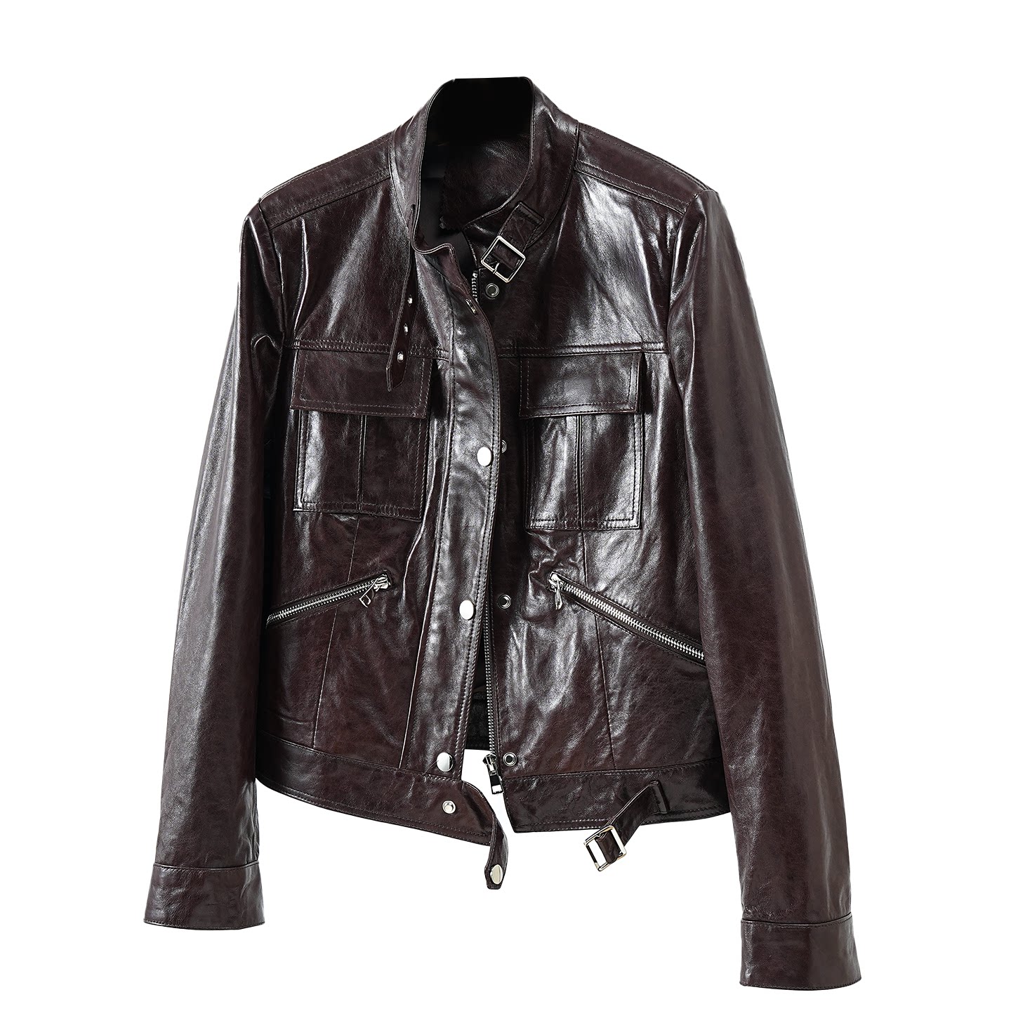欧洲站高端小羊皮真皮皮衣女短款 小个子皮夹克外套 2026春秋新款