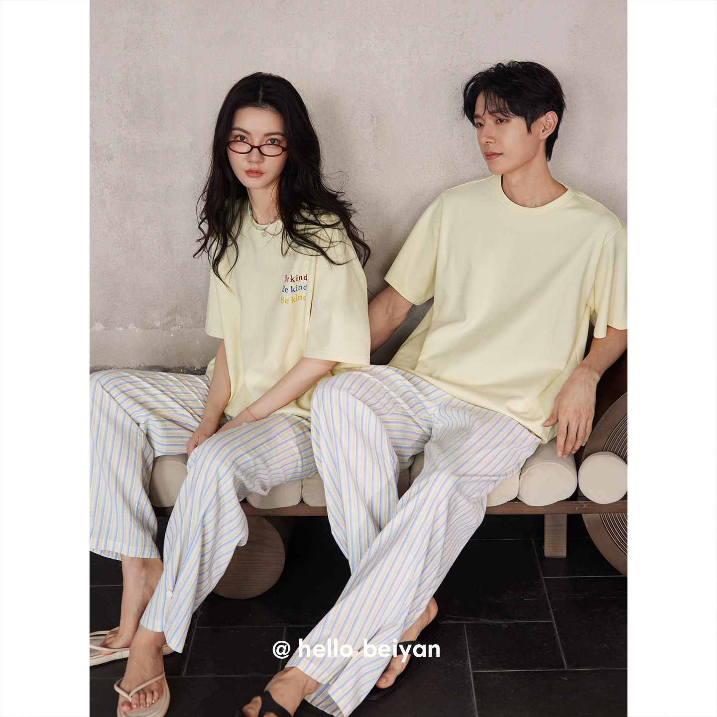简约宽松套装 贝妍新款 家居服男士 凉感莫代尔棉短袖 情侣睡衣女夏季