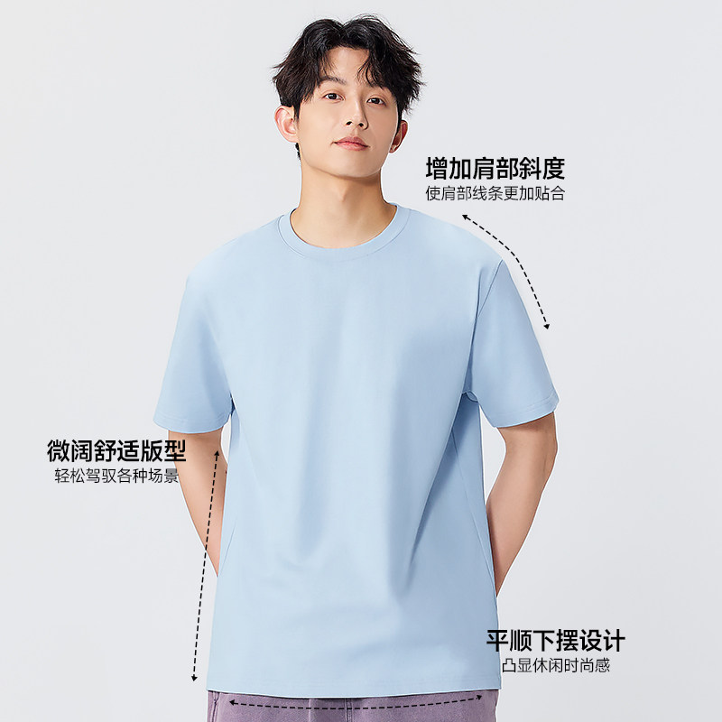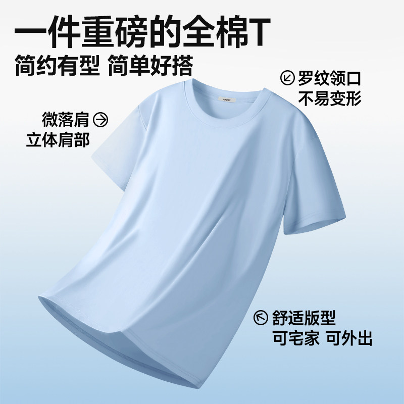 t恤男款 正肩半袖 夏季 小领口打底衫 白色纯棉长袖 名创优品重磅短袖