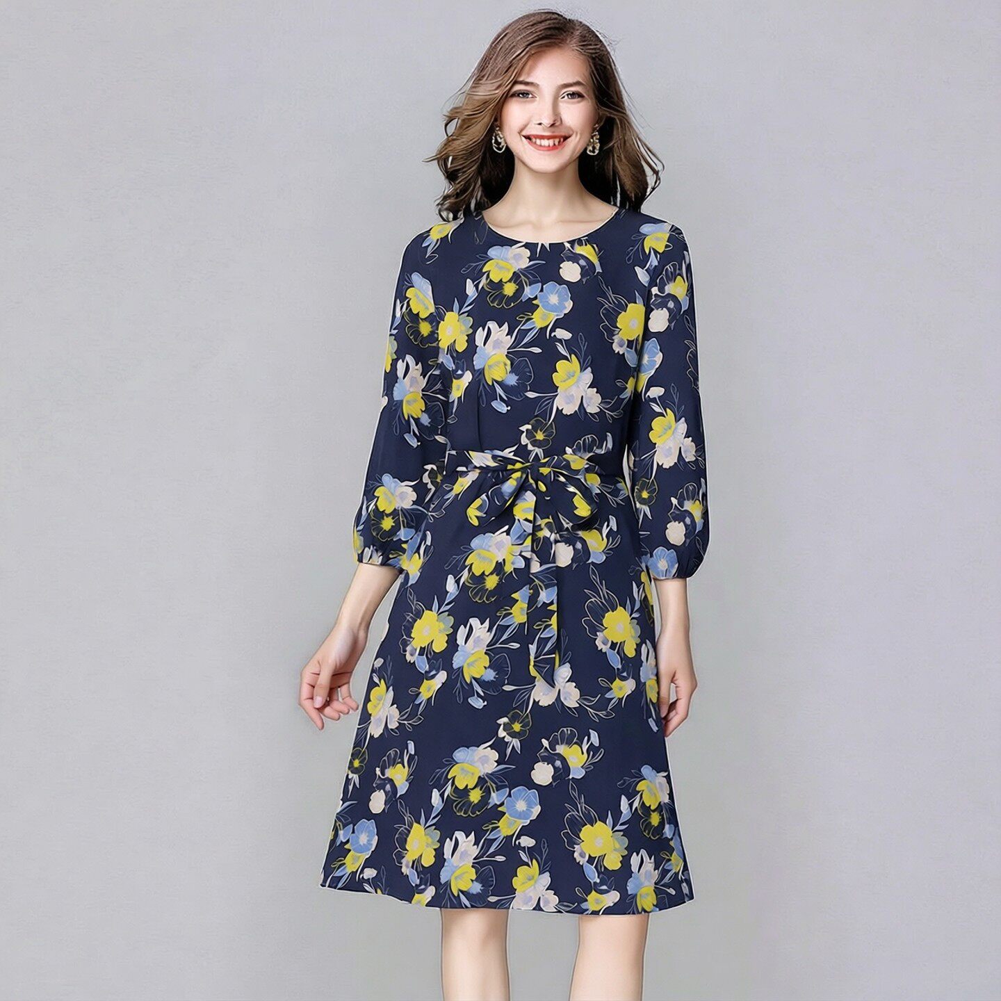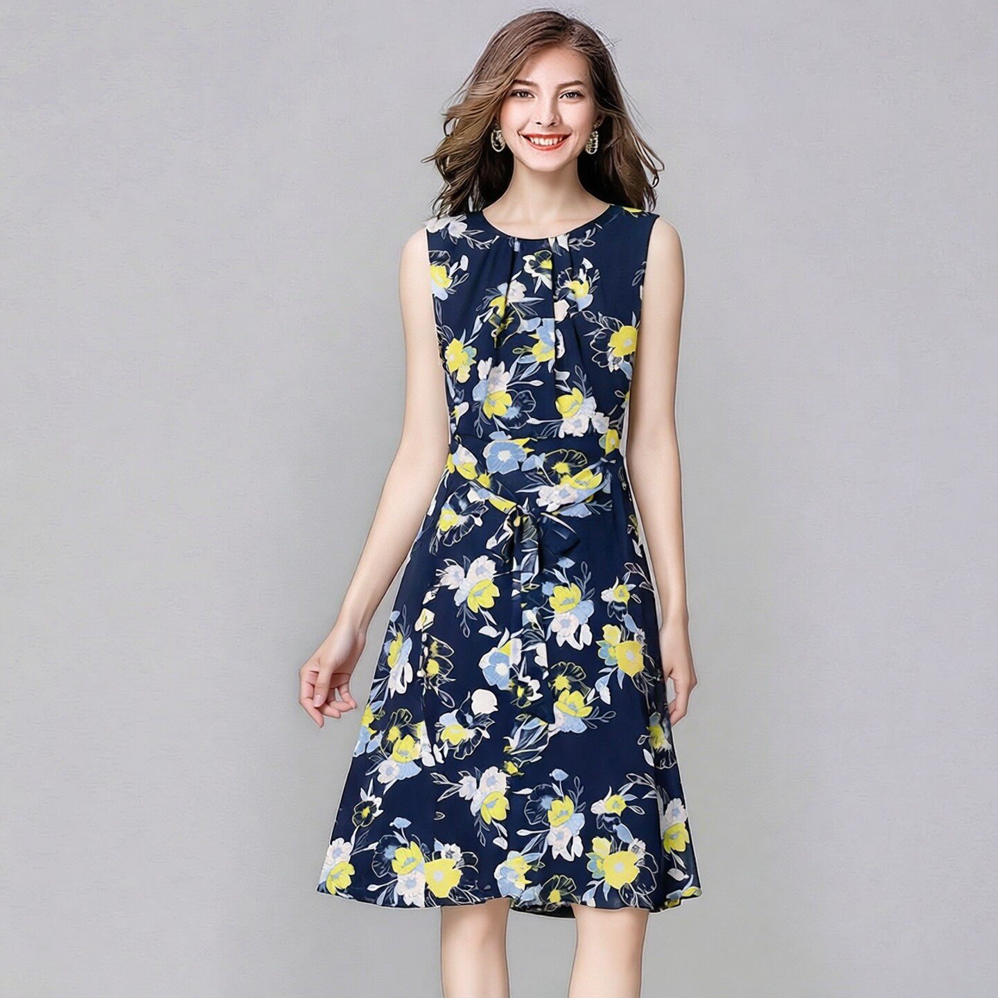 背心打底裙系带收腰碎花雪纺连衣裙2026春夏新款 无袖 女装 欧美大码