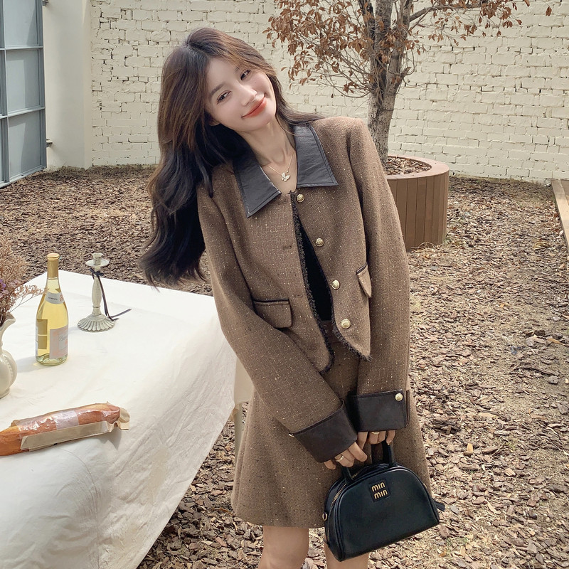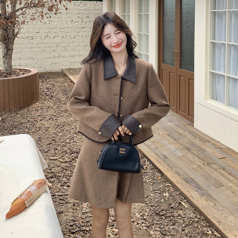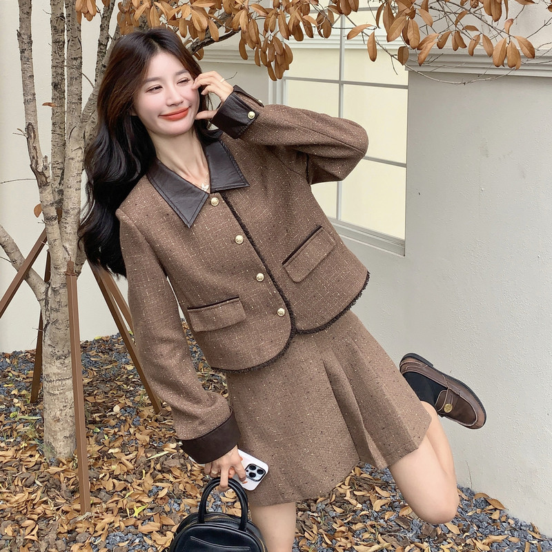 秋季 套装 新款 韩版 P190K278 现货 百褶裙小香风拼接两件套 时尚