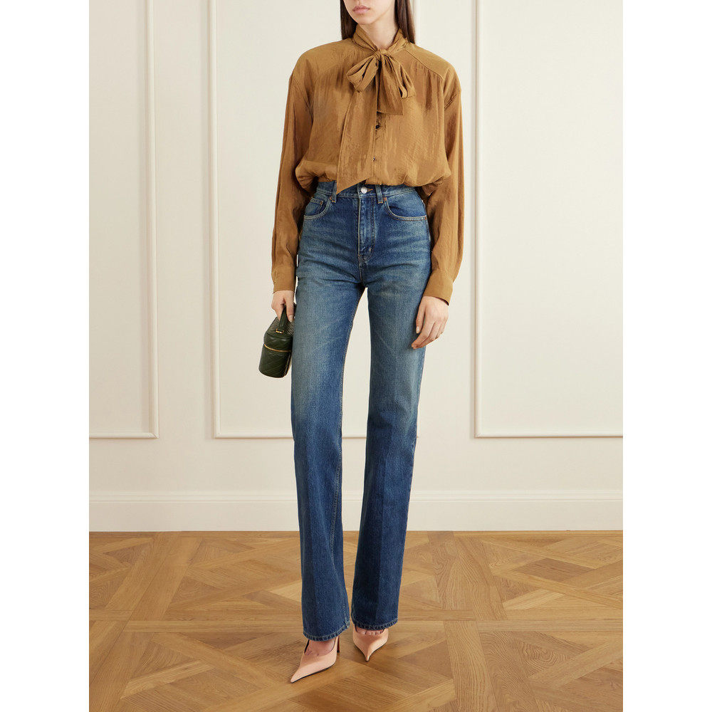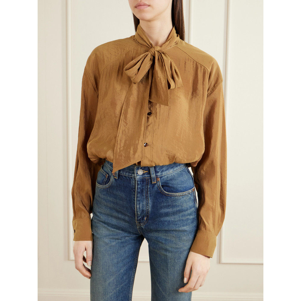 Laurent Saint 圣罗兰 女士 856 1h可退 天鹅绒褶裥打结领衫 潮奢
