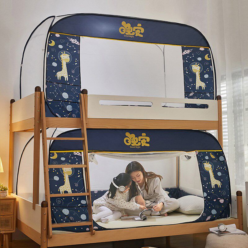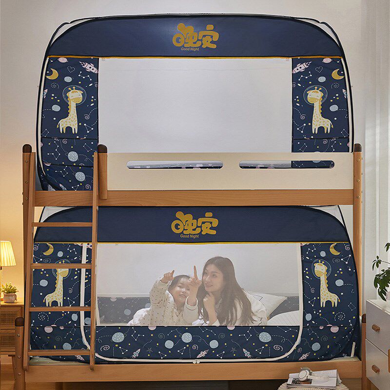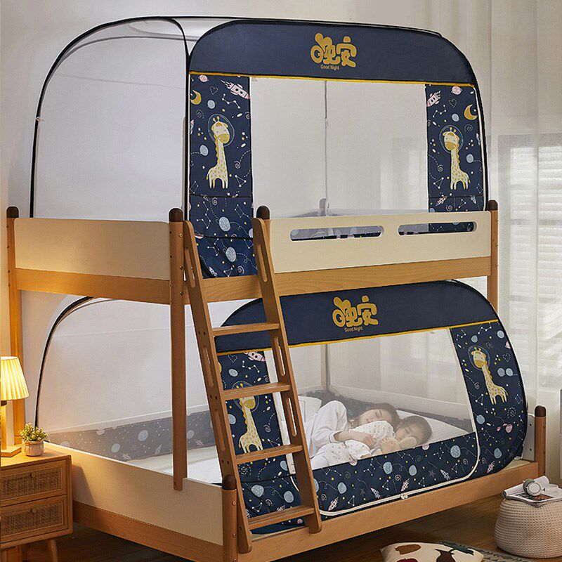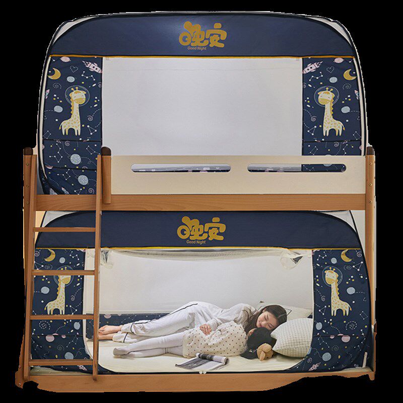 喜富锦子母床蚊帐上铺免安装 110双层梯形蒙古包下铺三门全底防摔
