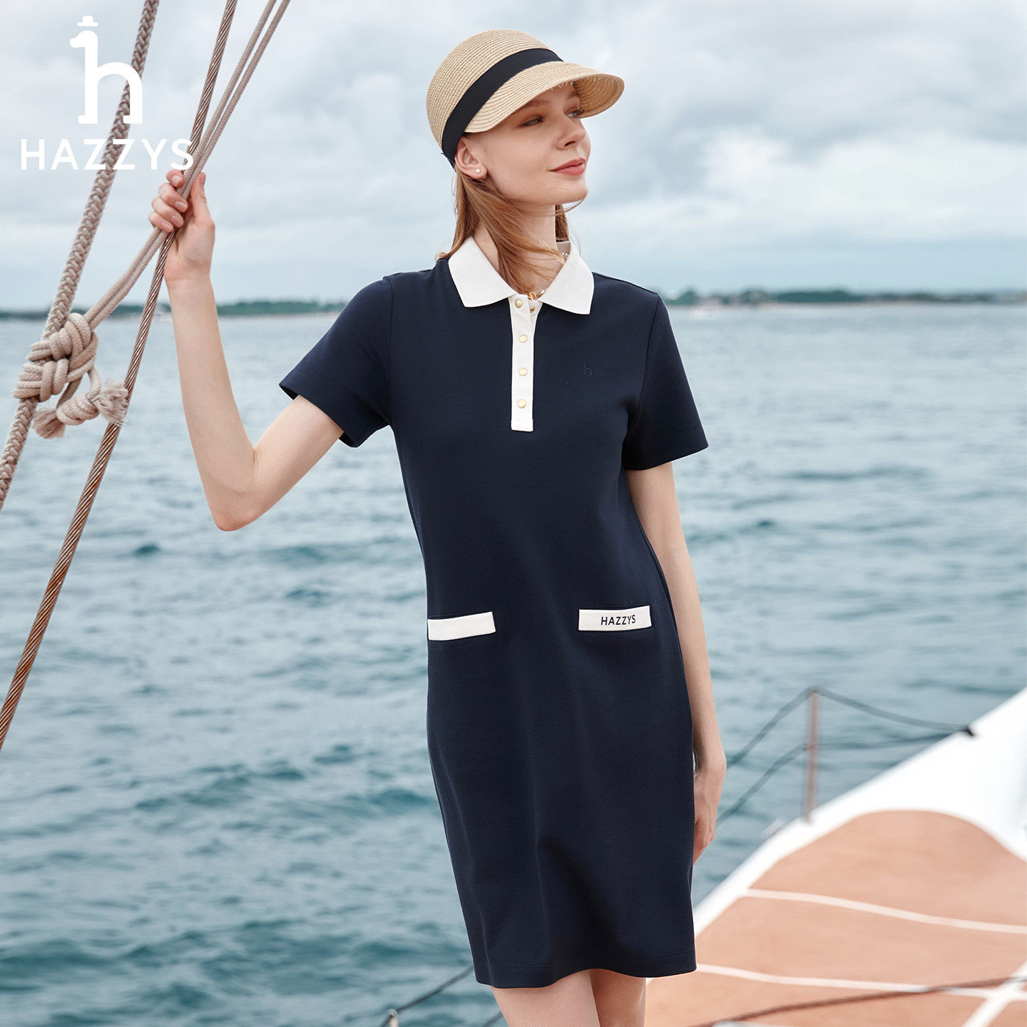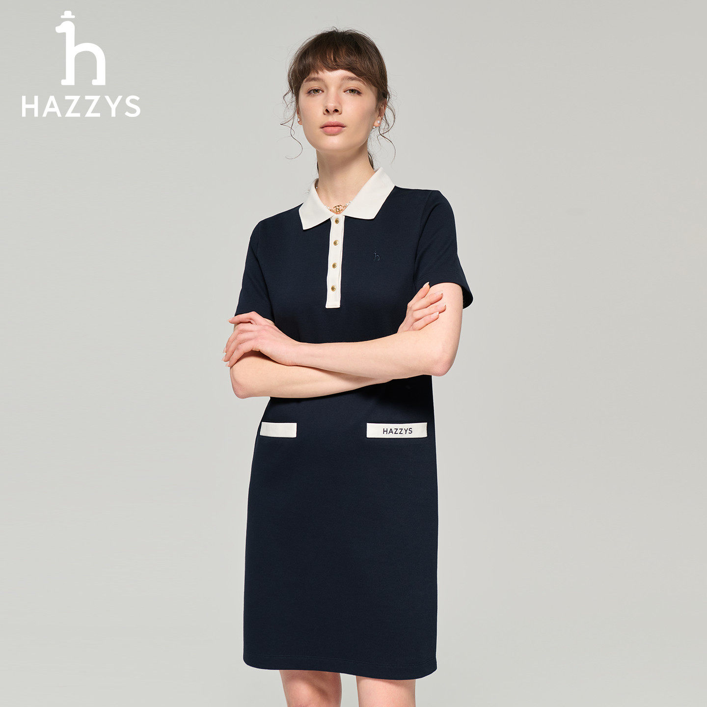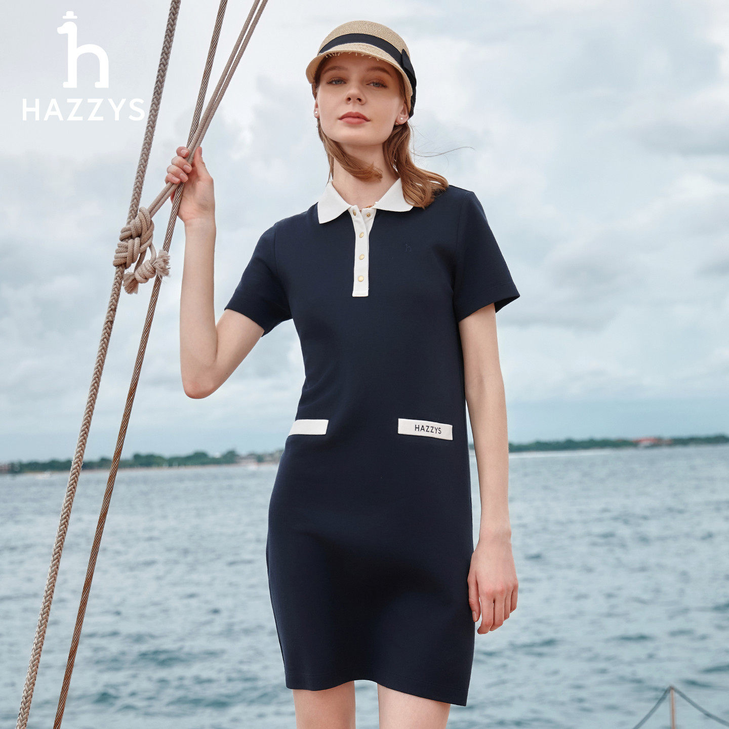 polo连衣裙女士时尚 Hazzys哈吉斯休闲短袖 显瘦针织裙 春夏甄选