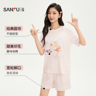 短裤 三福抗菌睡衣女款 可外穿短袖 雪花棉甜美印花家居服套装 春夏季