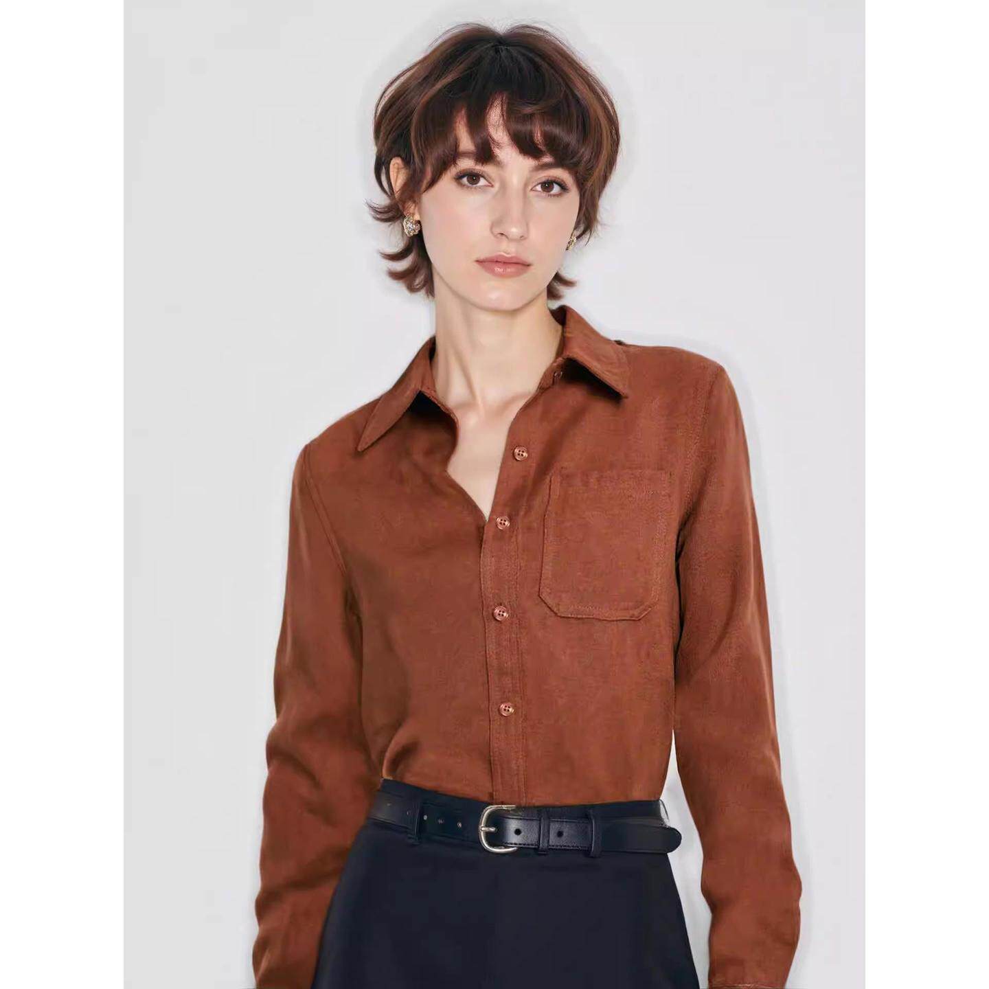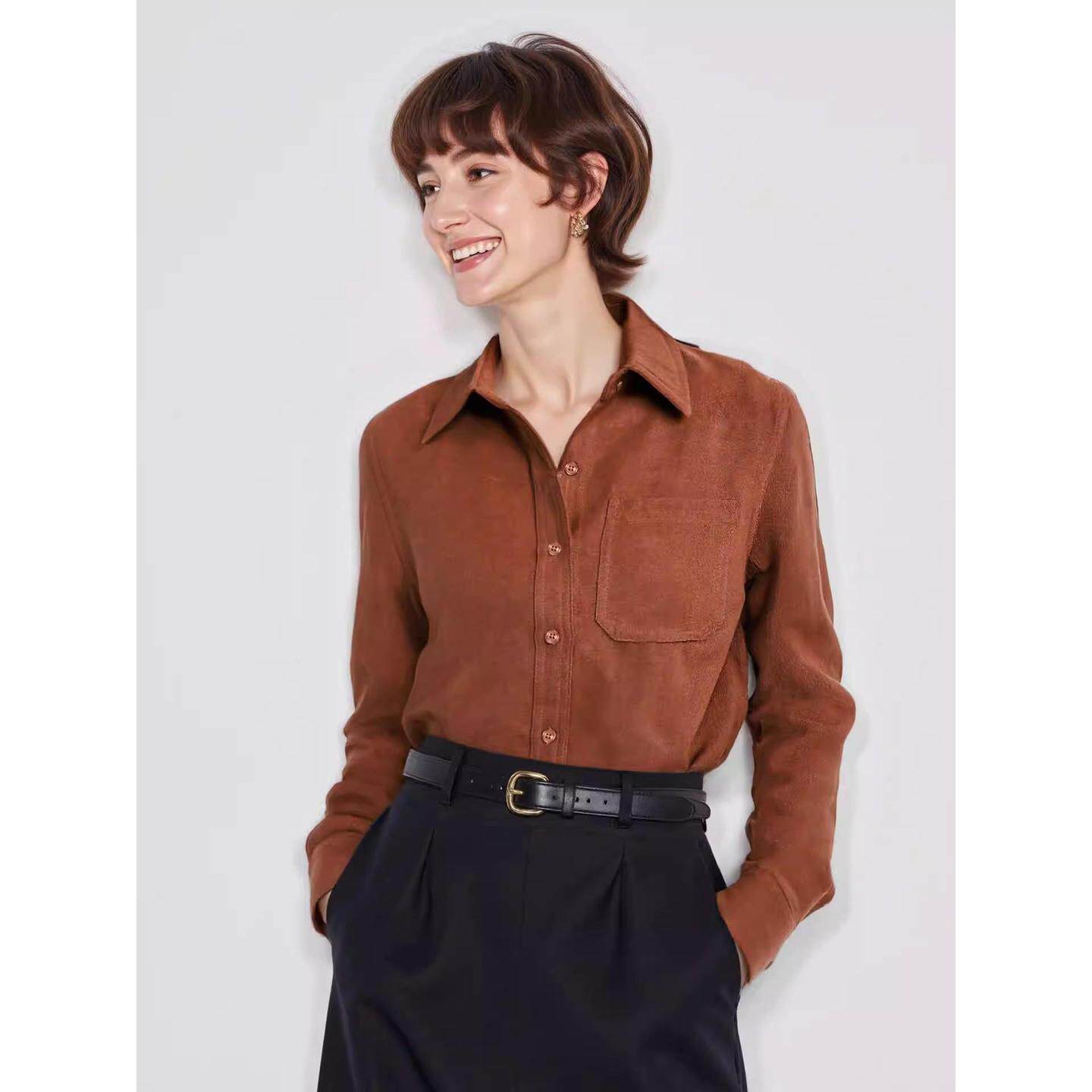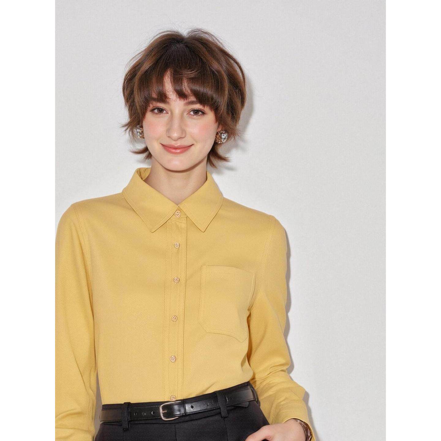 House 叠穿长袖 百家好黄色翻领磨毛衬衫 新款 衬衣 女2026春季 Basic