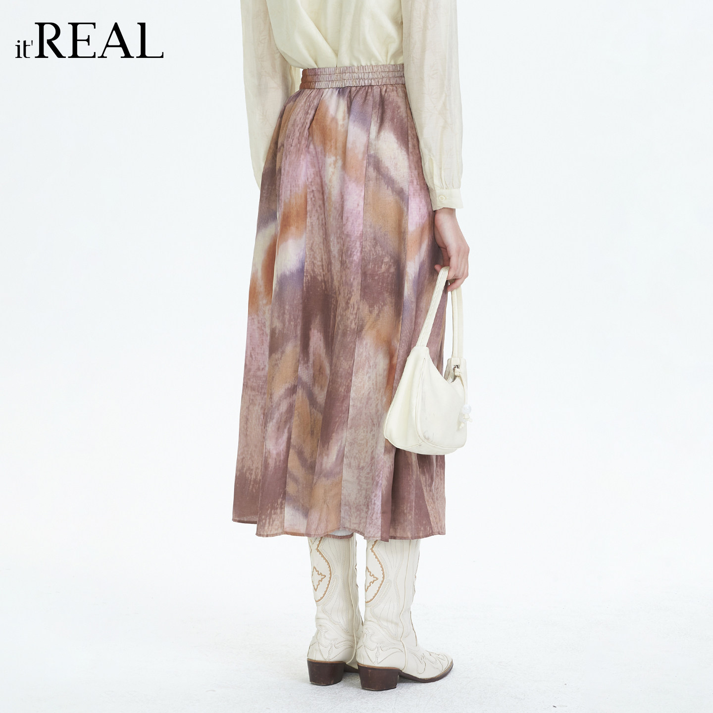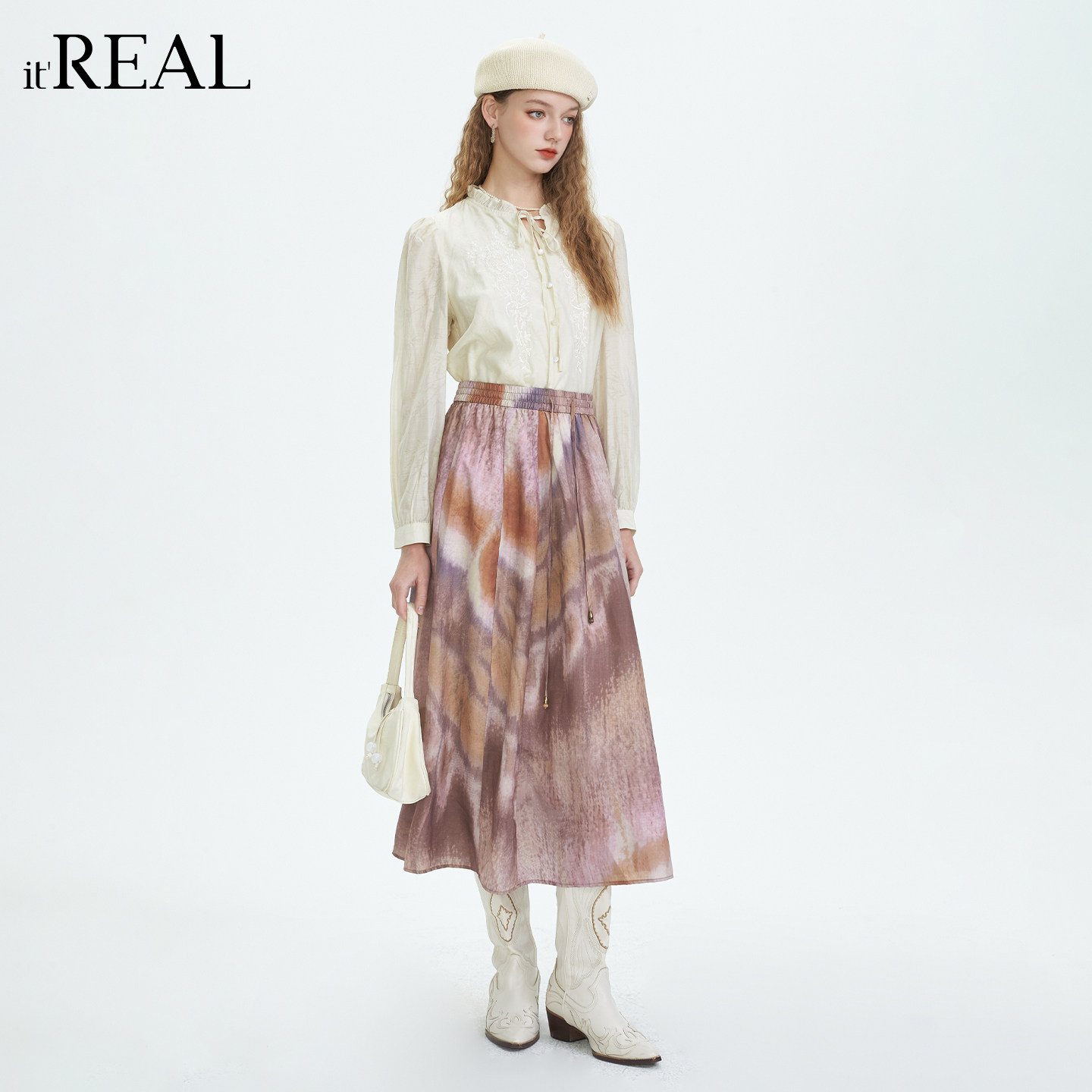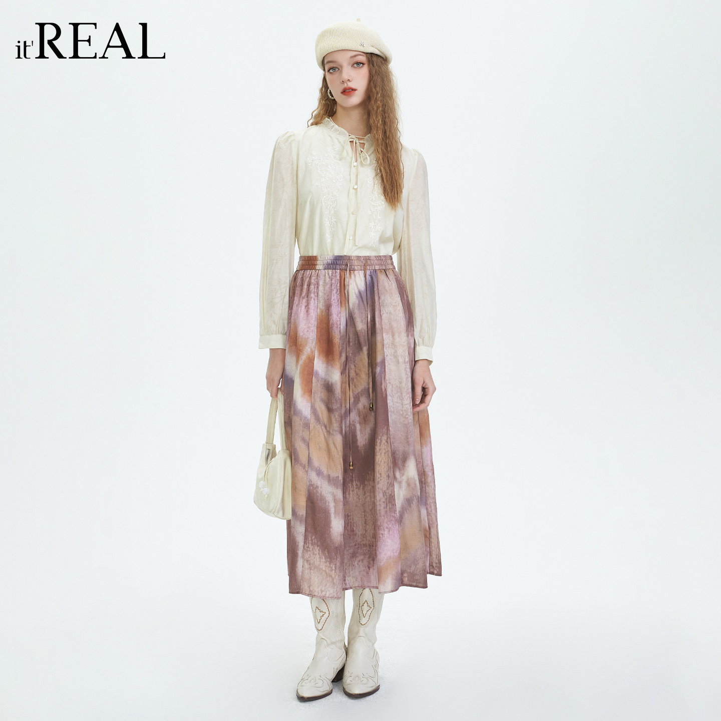 A字裙温柔半裙 复古印花半身裙女高腰显瘦中长款 real法式