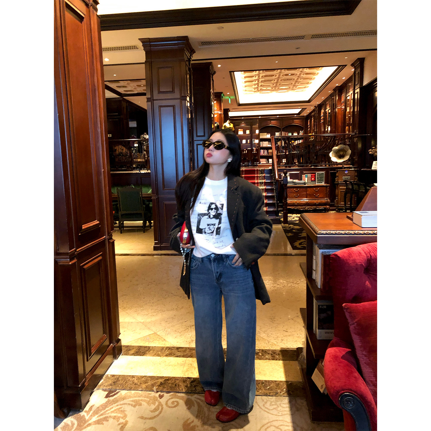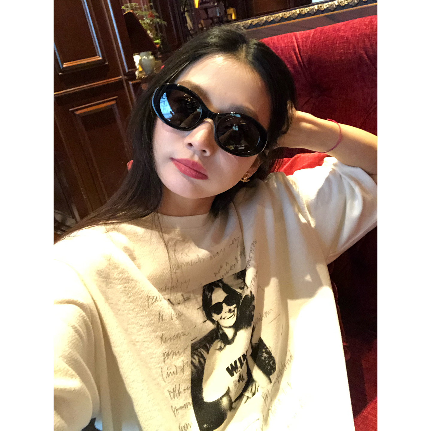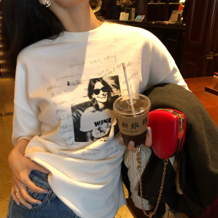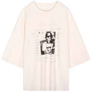 宽松T恤女白色印花小个子上衣早春设计感 五分袖 落落狷介 2026新款