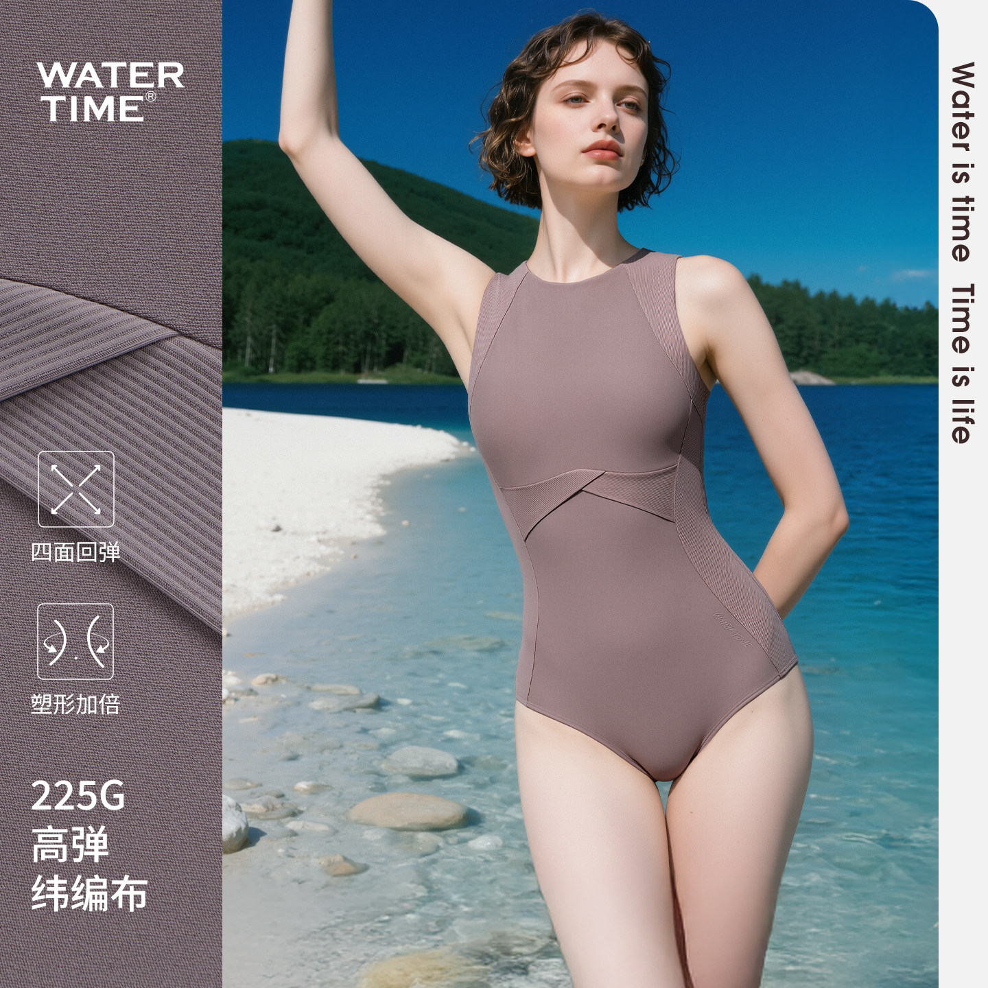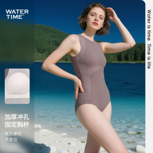 WaterTime泳衣女新款 连体三角游泳馆专用休闲温泉度假竞速游泳衣