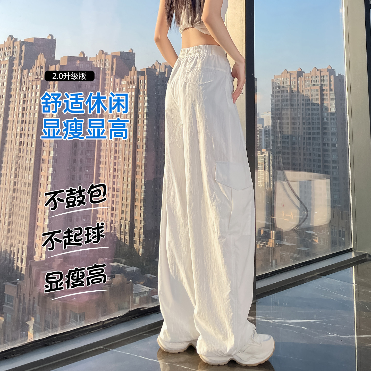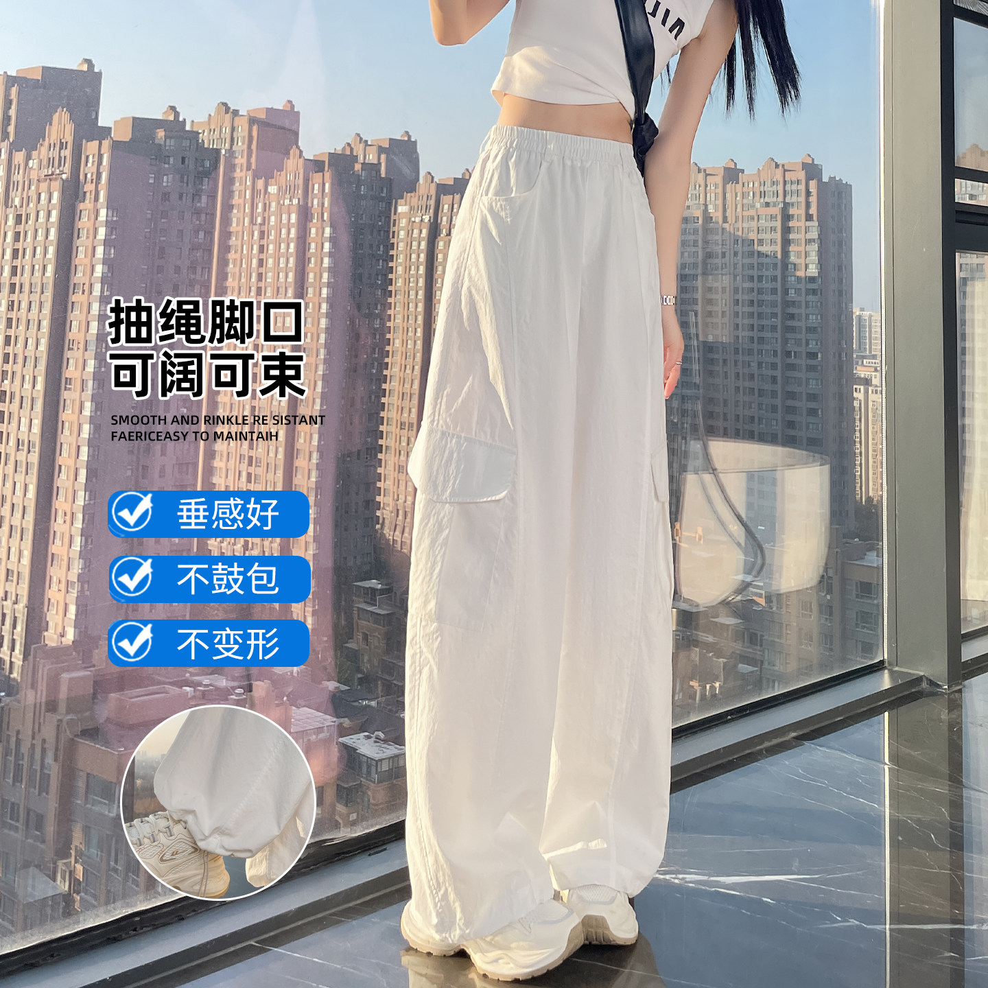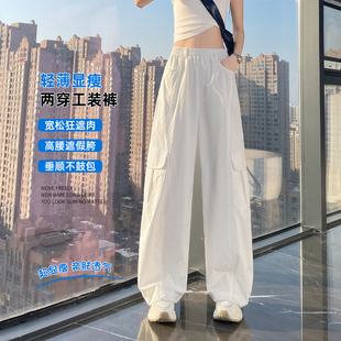 高腰两穿白色宽松显瘦弯刀香蕉休闲裤 阔腿工装 美式 女2026春新款 裤