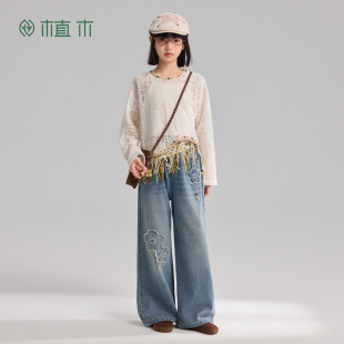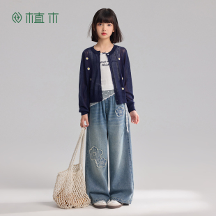 复古小花匠 童装 贴布花朵工艺 2026年春夏新款 儿童牛仔裤 植木