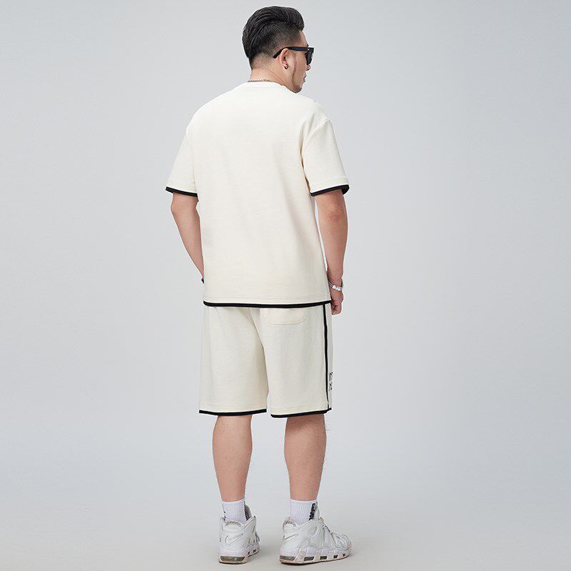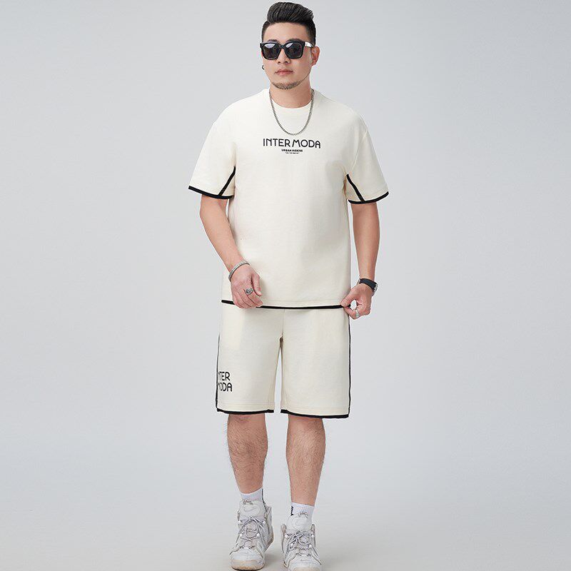 加肥加大码 胖子宽松运动休闲T恤2件套五分裤 短袖 套装 短裤 2025夏季