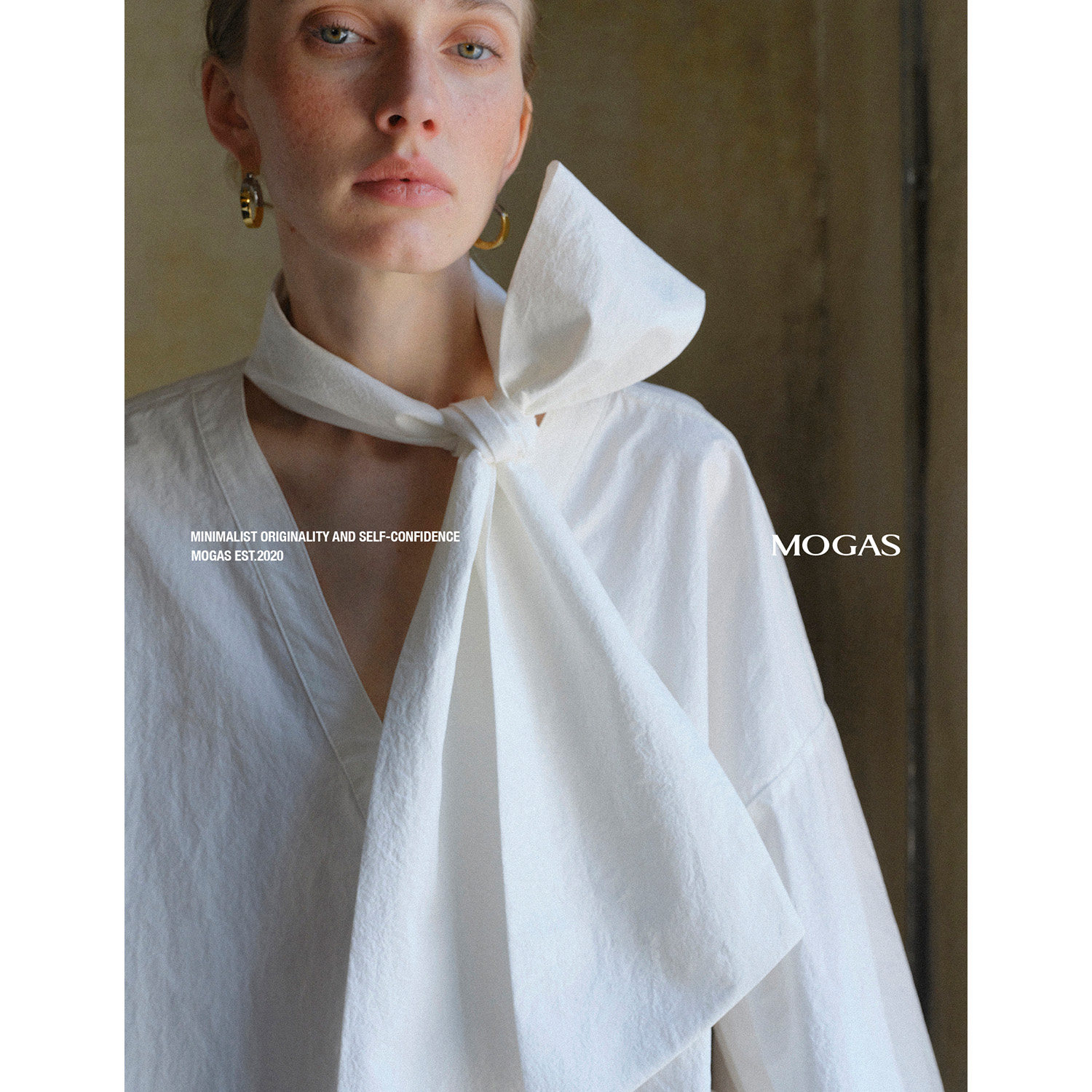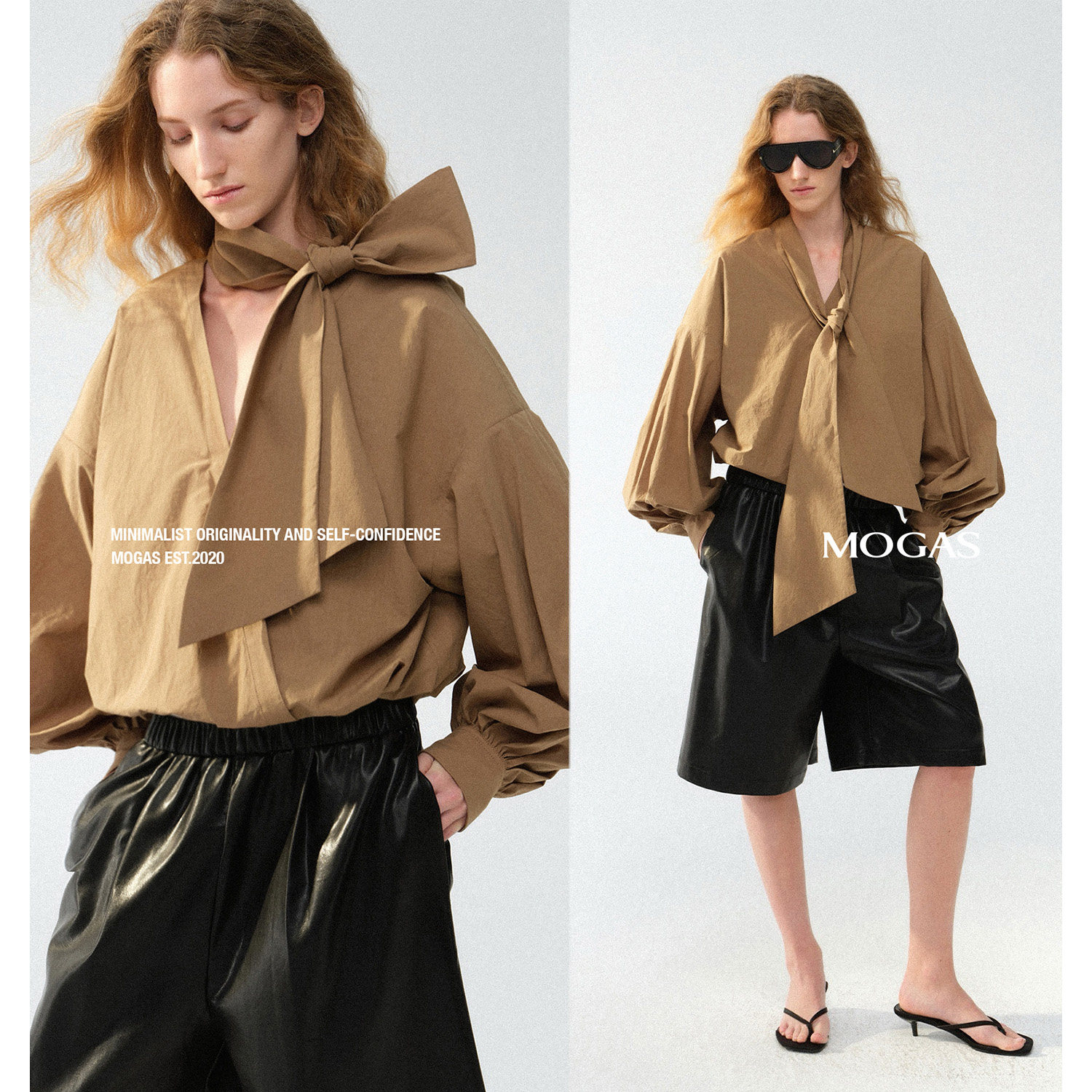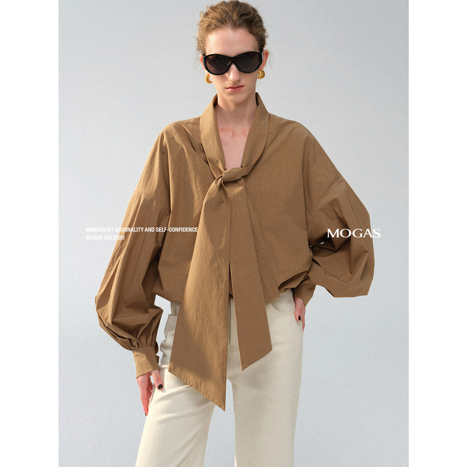 100纯棉微皱上衣V领立体绑带蝴蝶结衬衫 Mogas高智大女主 现货