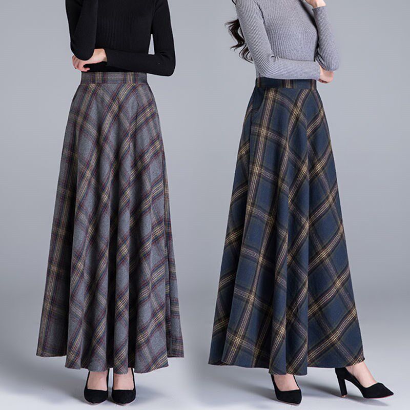 Woolen plaid Winter High Women& Autumn Waist 2019 Mom Skirts