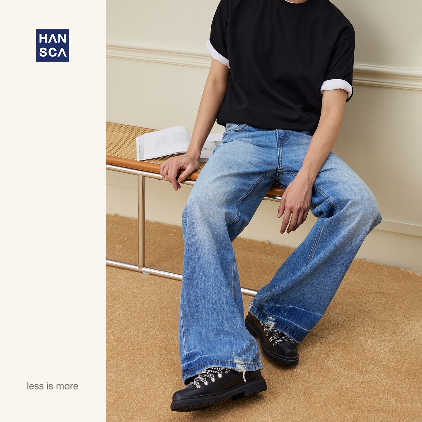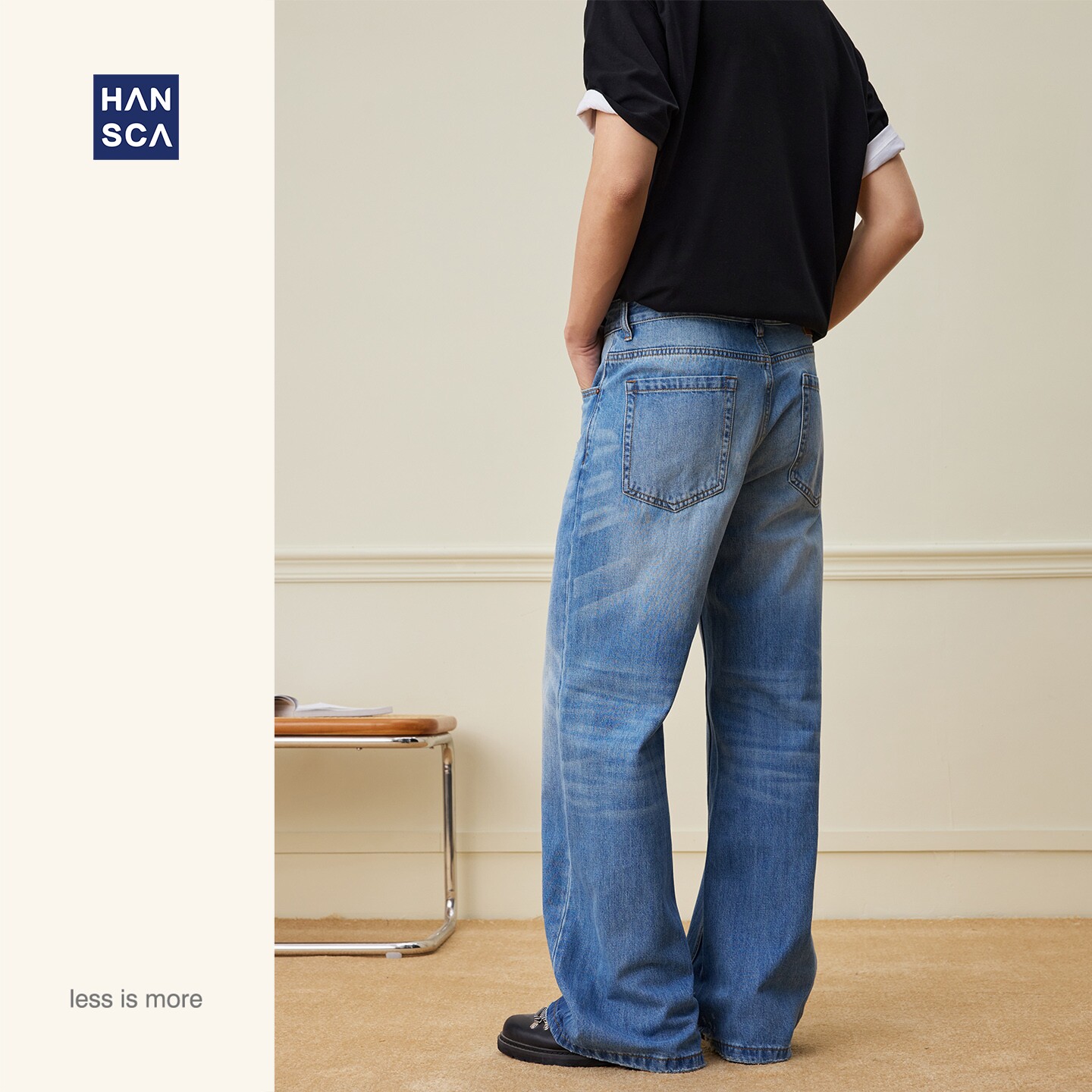 A字版 复古直筒长裤 型10盎司竹节纹牛仔裤 美式 子 男2026春季 hansca