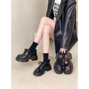 英伦风厚底增高玛丽珍乐福鞋 小皮鞋 法式 新款 粗跟系带 女2026春季