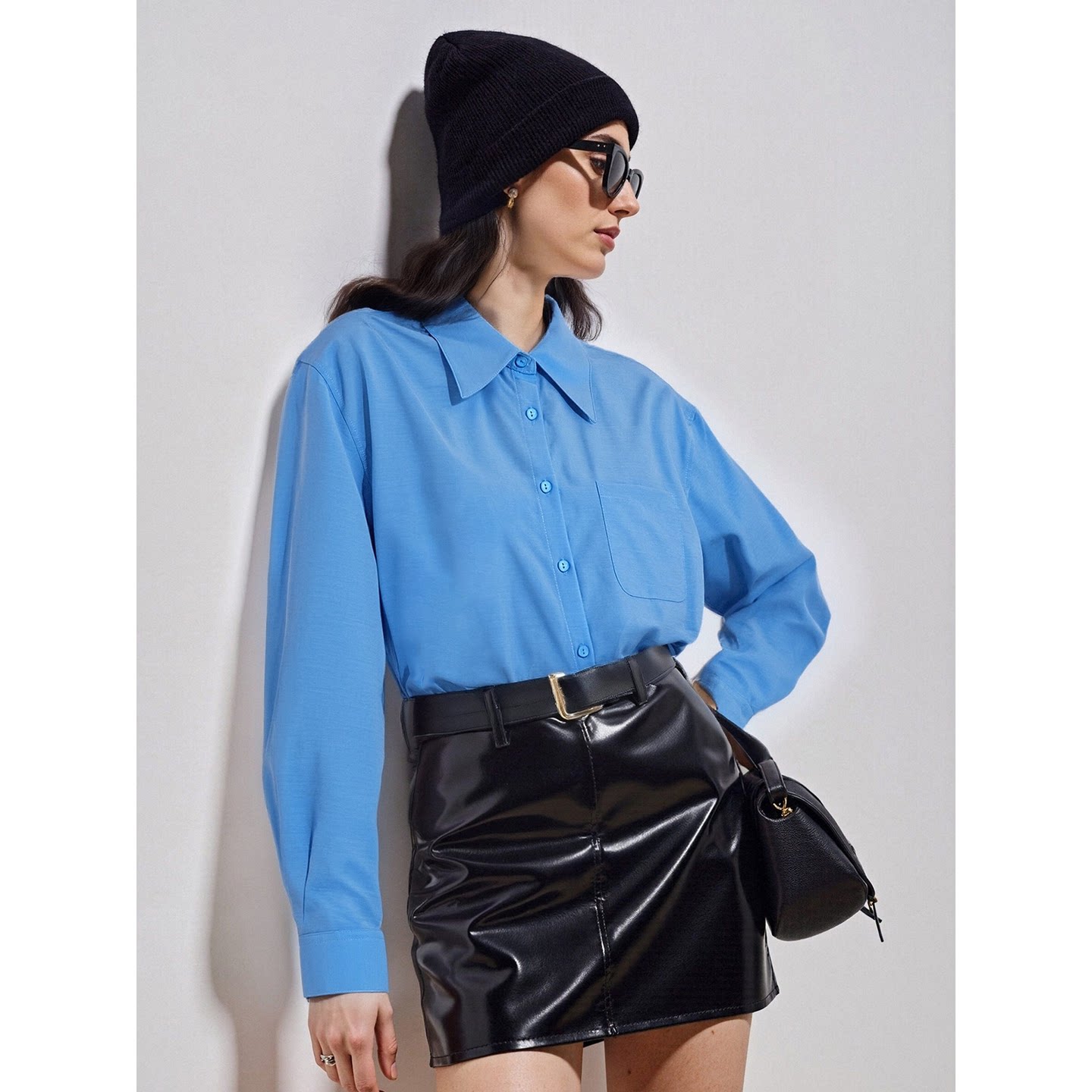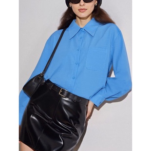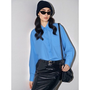 House 叠穿长袖 百家好蓝色翻领衬衫 新款 内搭上衣 女2026春季 Basic