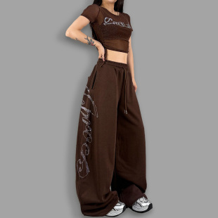 宽松休闲裤 ROKBBK-K 女街舞个性 嘻哈风烫钻阔腿裤 潮流 布韩美式