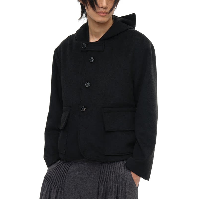 大翻袋插袋 JCAESAR 89%羊毛 连帽插袋毛呢夹克 微宽松 JACKET