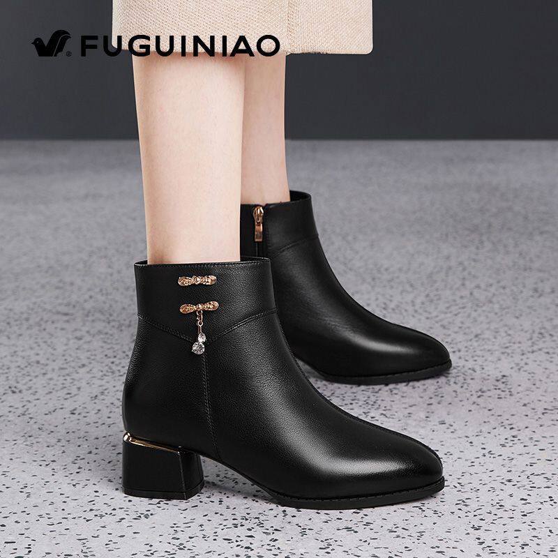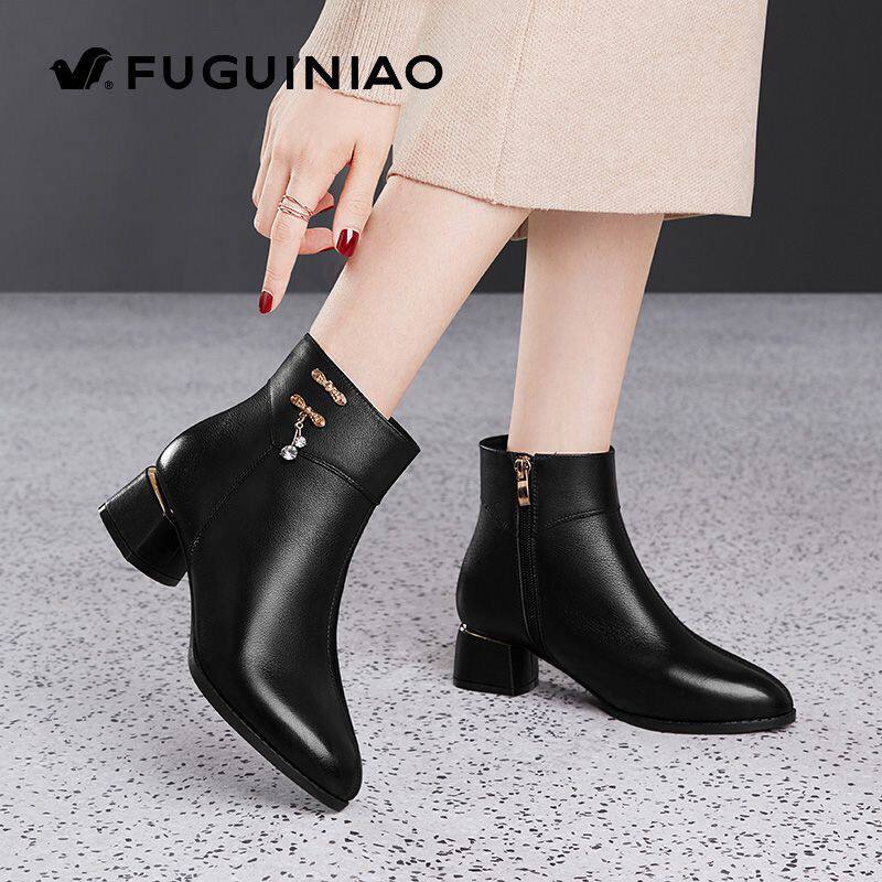 子女2026新款 头层真皮鞋 女鞋 秋冬款 富贵鸟品牌正品 女士皮鞋 妈妈鞋