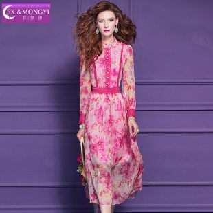 菲梦伊原创印花衬衫 淑女减龄超仙收腰海边度假长裙子 连衣裙女春季