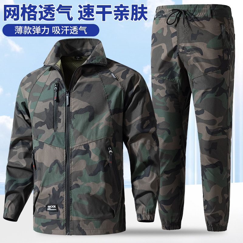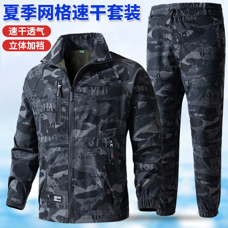 工作服休闲户外车间透气轻薄工装 弹力迷彩套装 劳保服 速干衣裤 夏季