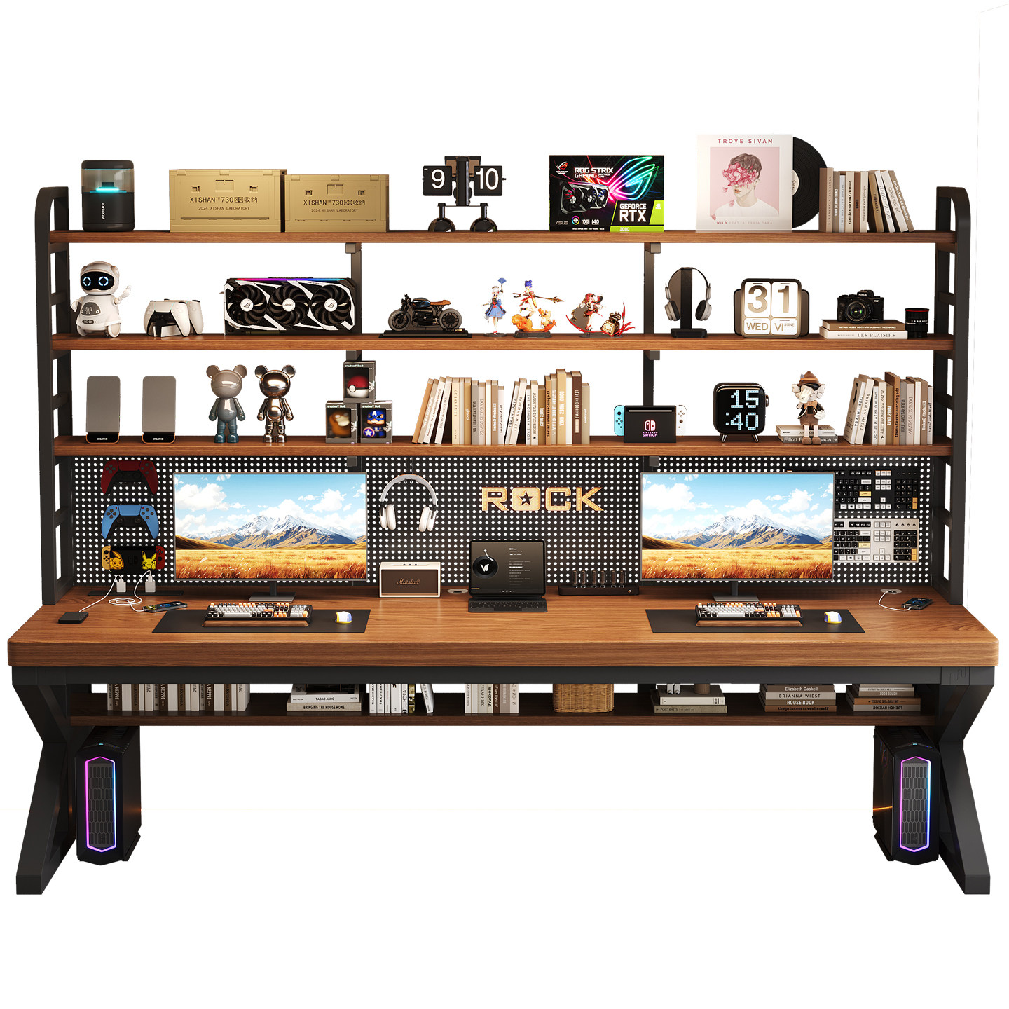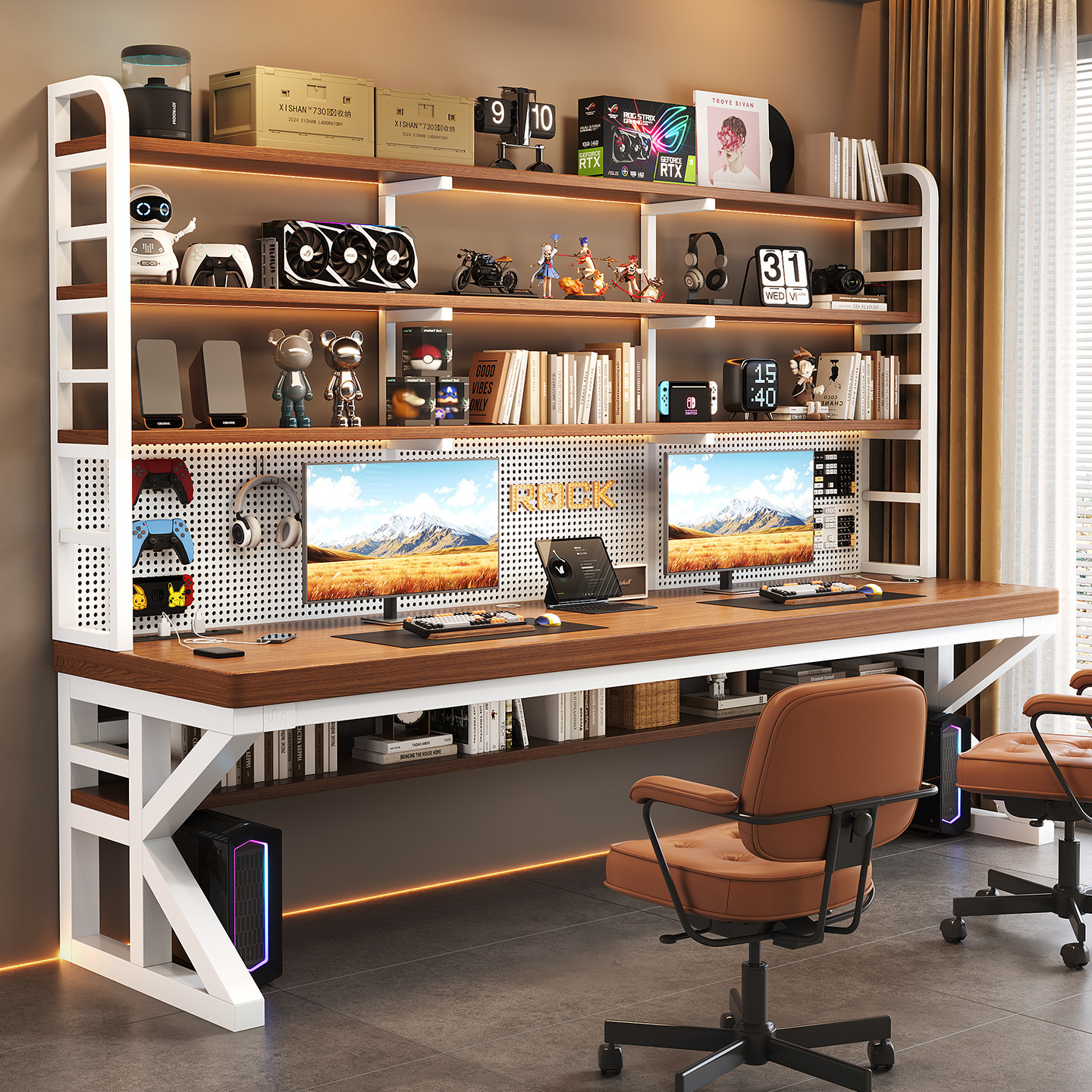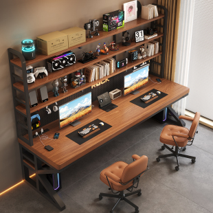 电脑桌双人台式 电竞桌学习办公桌学生家用洞洞板书桌书架一体桌子