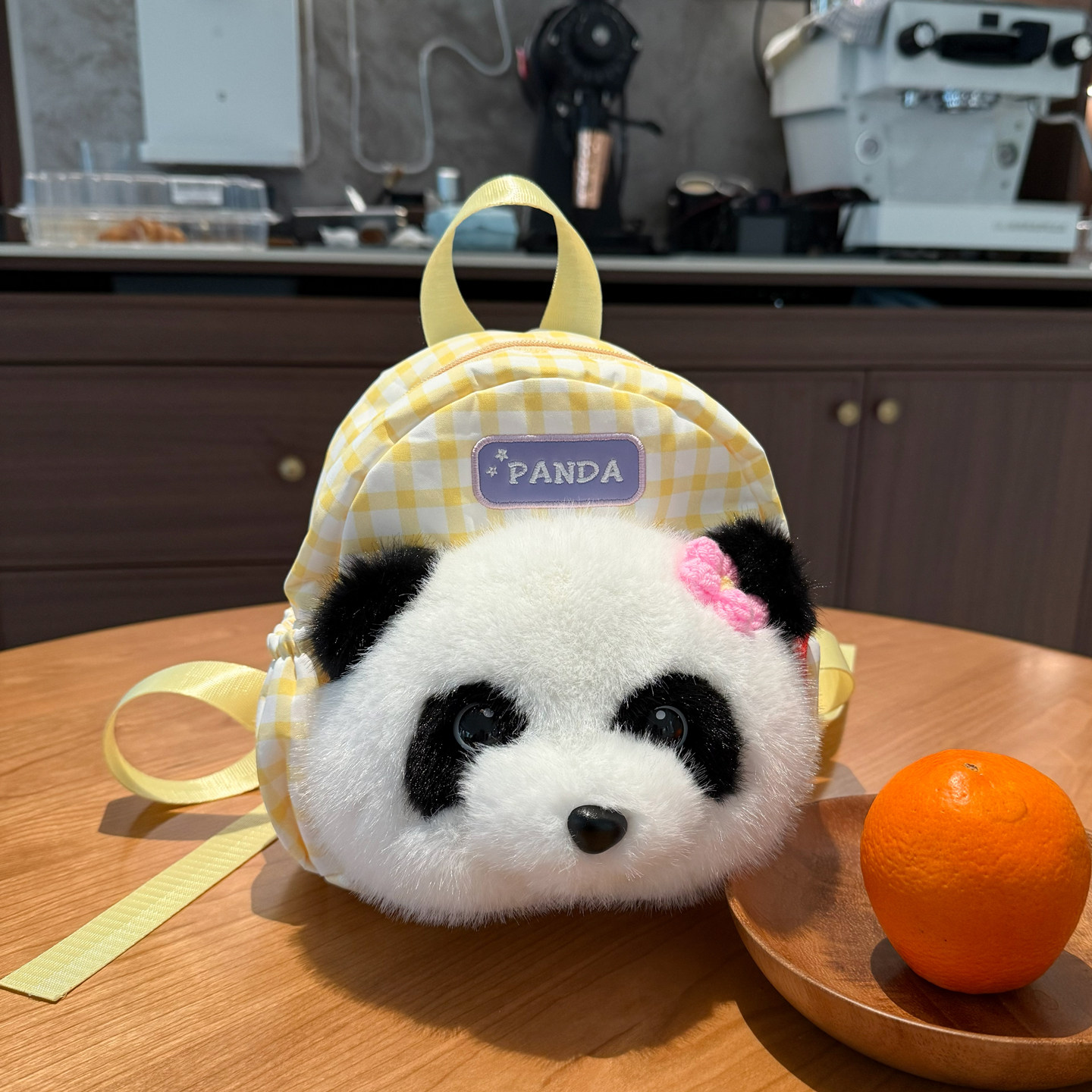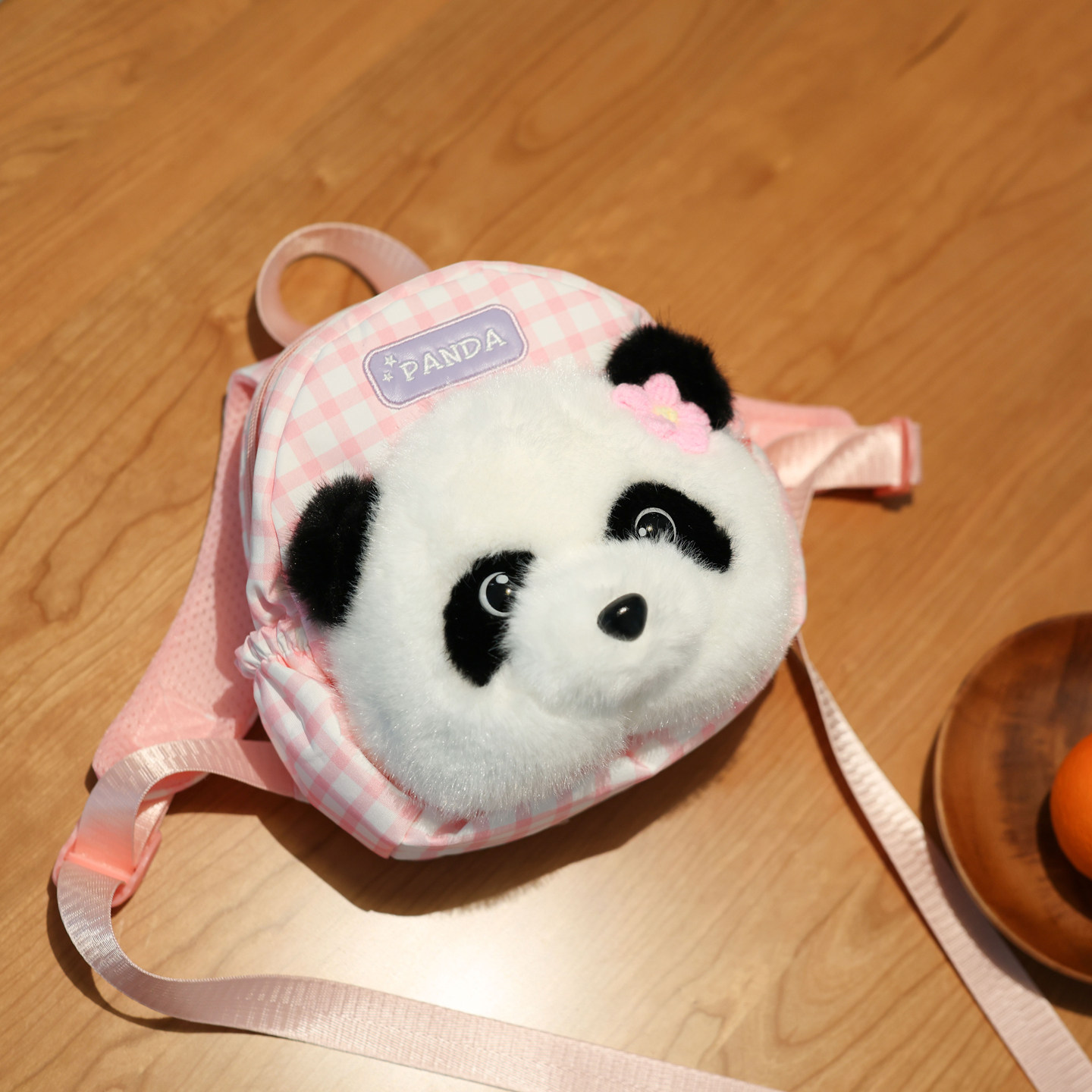 可爱卡通毛绒小熊猫儿童书包幼儿园女孩宝宝双肩女童包包小背包