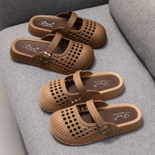 26仿编织镂空包头拖女厚底一脚蹬懒人穆勒鞋 透气舒适半包女士凉拖