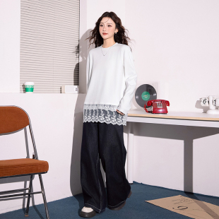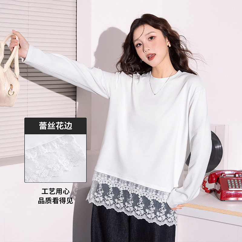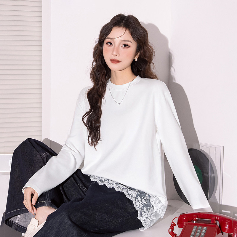 时尚 女款 叠穿蕾丝下摆 T恤春季 宽松打底内搭 简约温柔甜美长袖