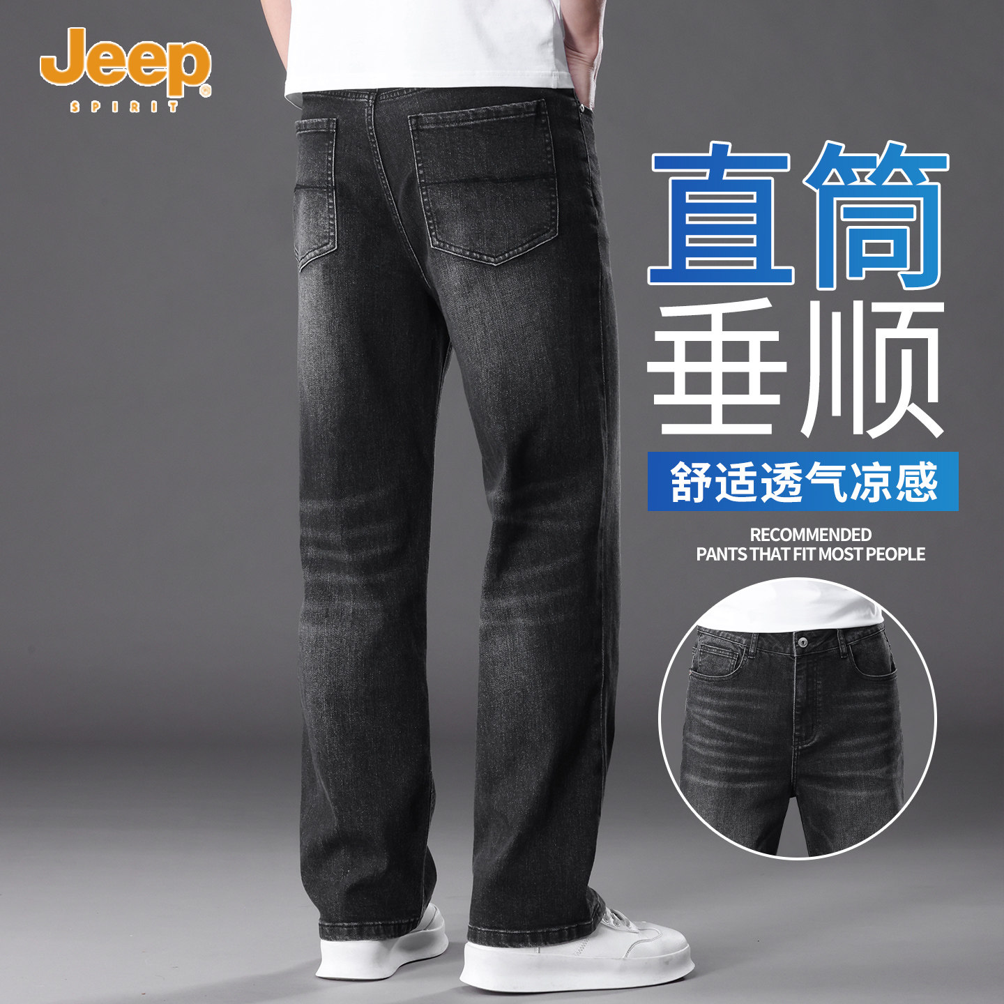 新款 弹力休闲百搭长裤 男士 直筒男裤 子 宽松牛仔裤 JEEP吉普2026夏季