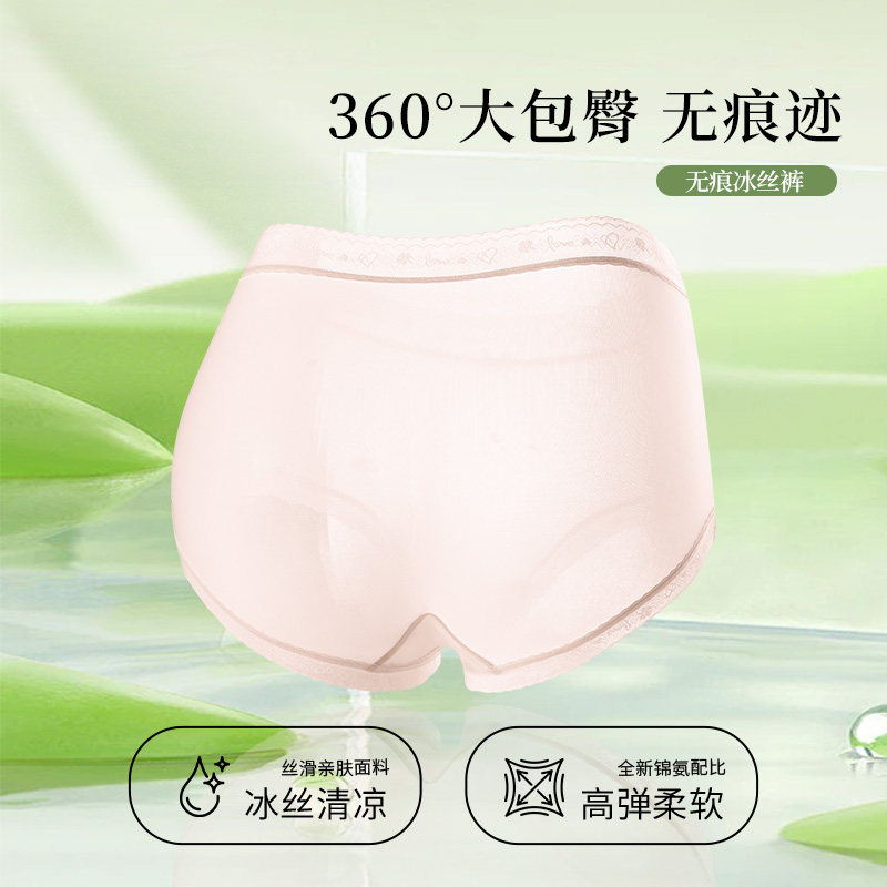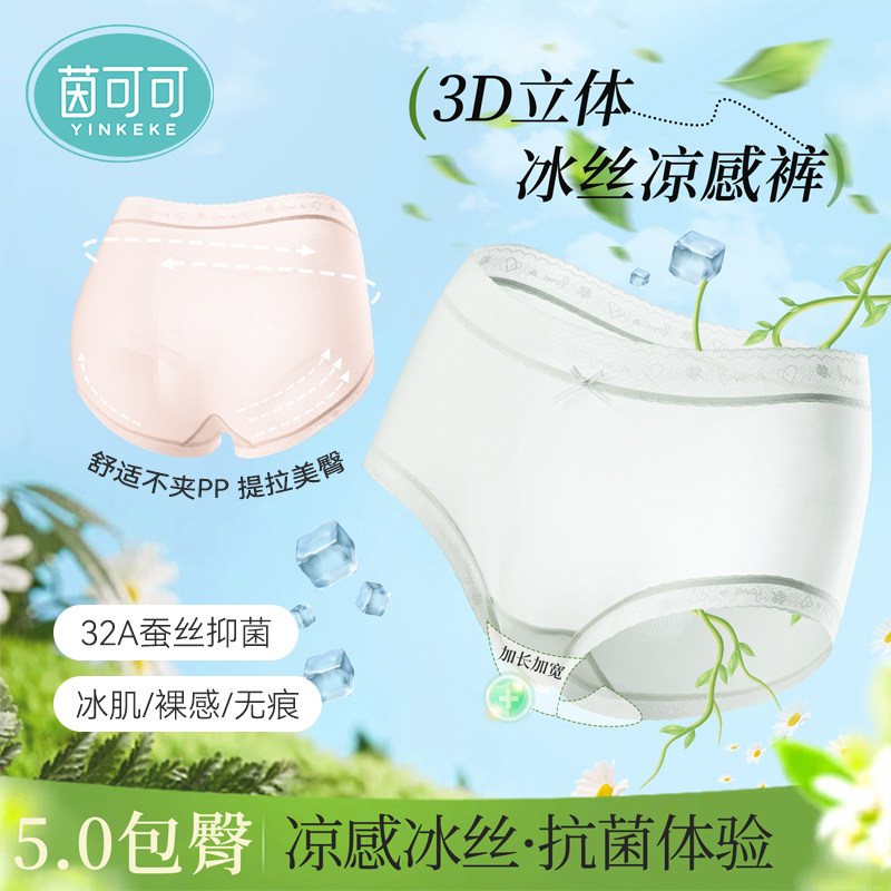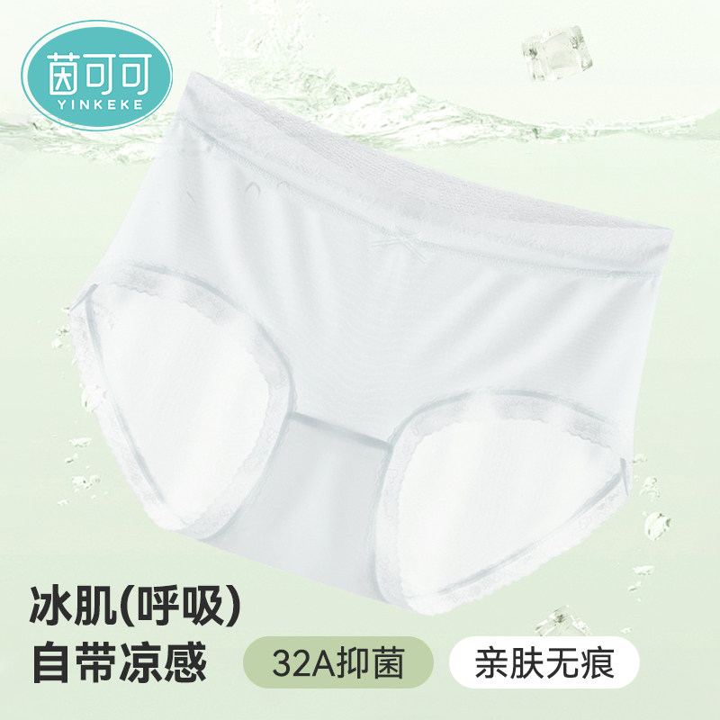 茵可可冰丝内裤 透气无痕蕾丝花边抗菌抑菌桑蚕丝里裆女三角内裤
