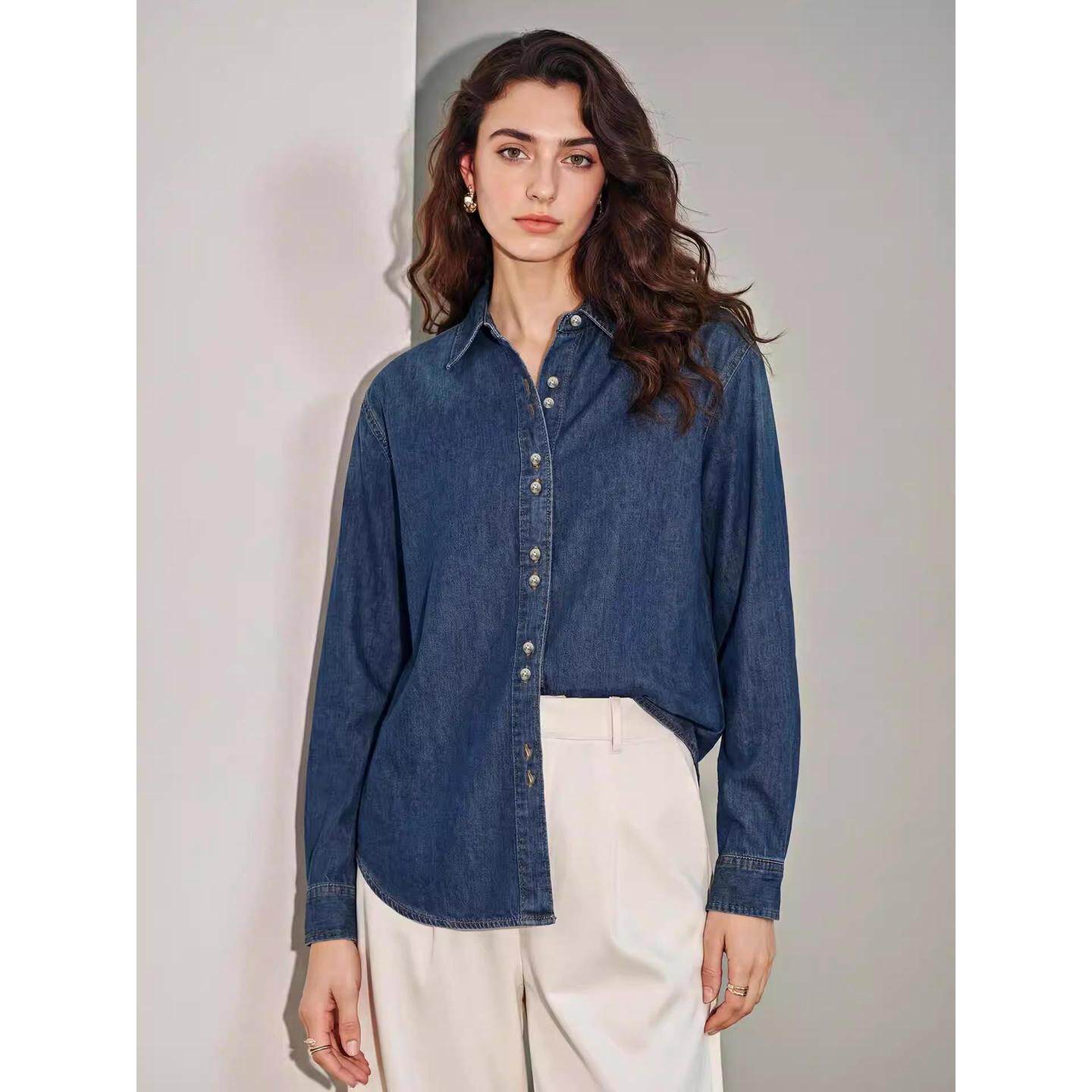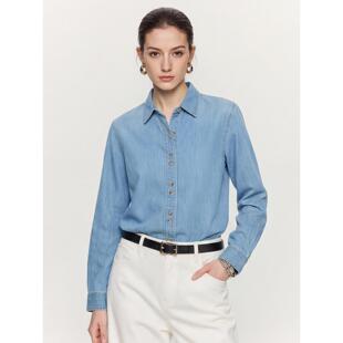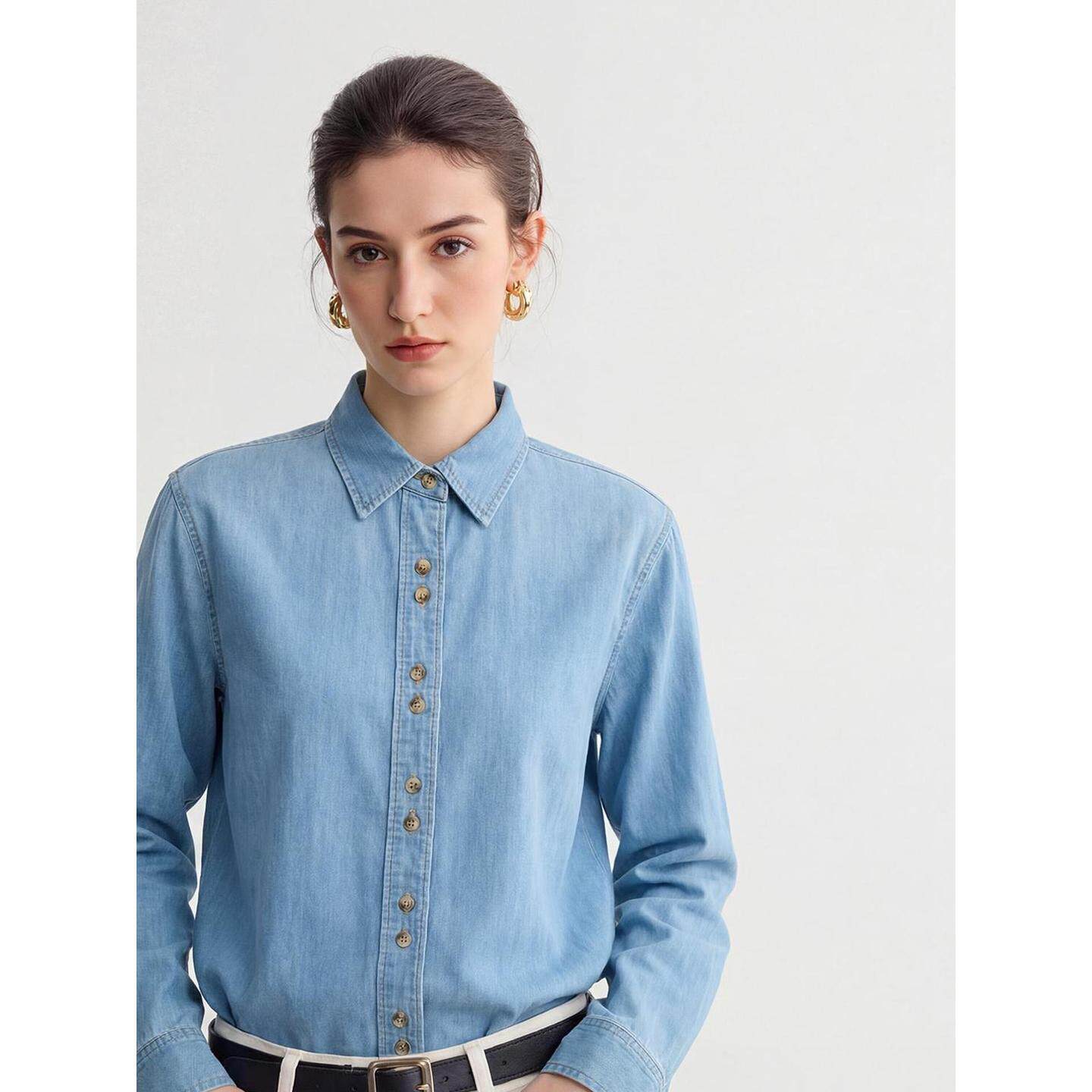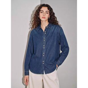 新款 Basic 女2026春季 百家好浅蓝色纯棉牛仔衬衫 POLO领衬衣 House