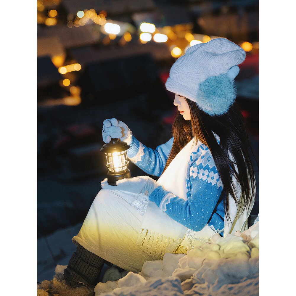 新疆雪景拍照出片神灯阿勒泰蓝调时刻手提氛围感发光阿拉丁神灯