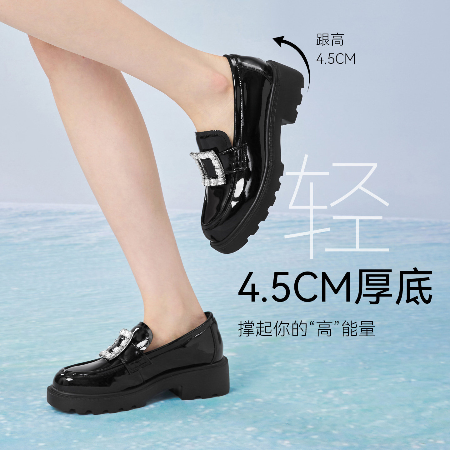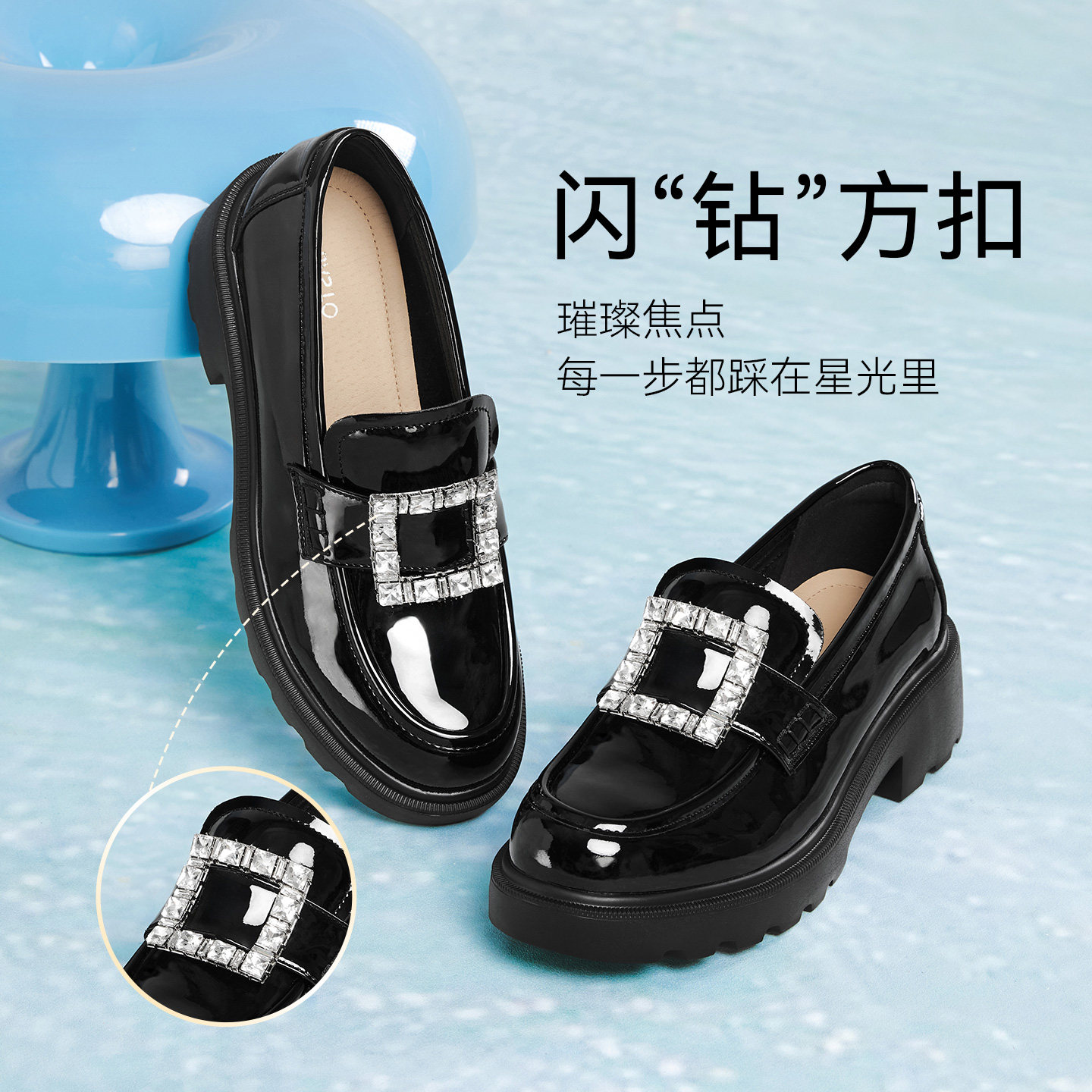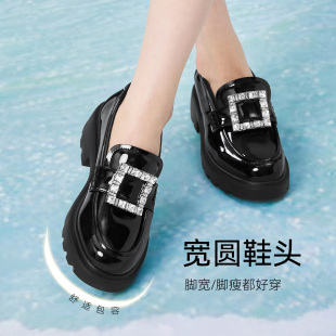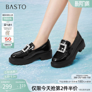 女单鞋 百思图2026春季 小皮鞋 方扣英伦风厚底乐福鞋 UXV10AA6 新款