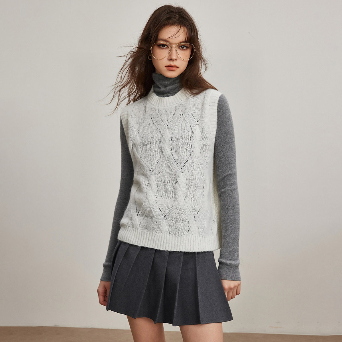ESPRIT 马甲叠穿气质通勤 埃斯普利特老钱风绞花针织背心女无袖