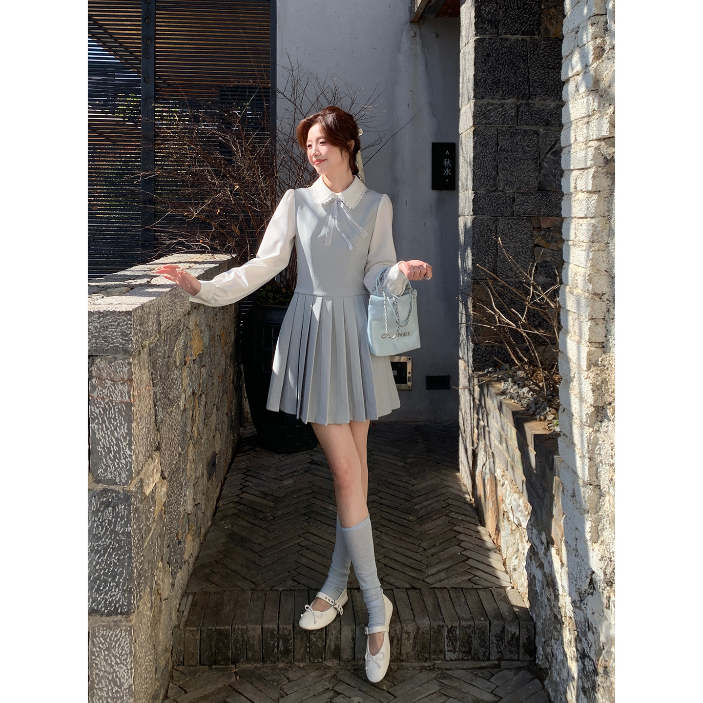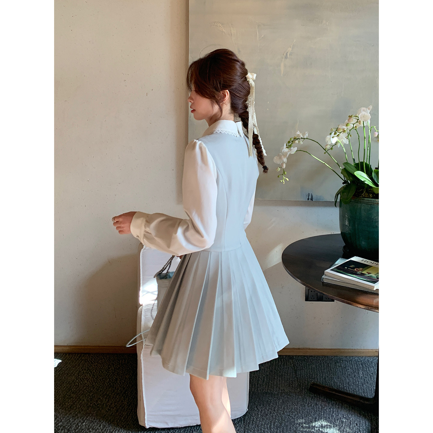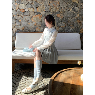 Even一雯 韩系高智假两件显瘦连衣裙精致千金百褶短裙 温柔女友