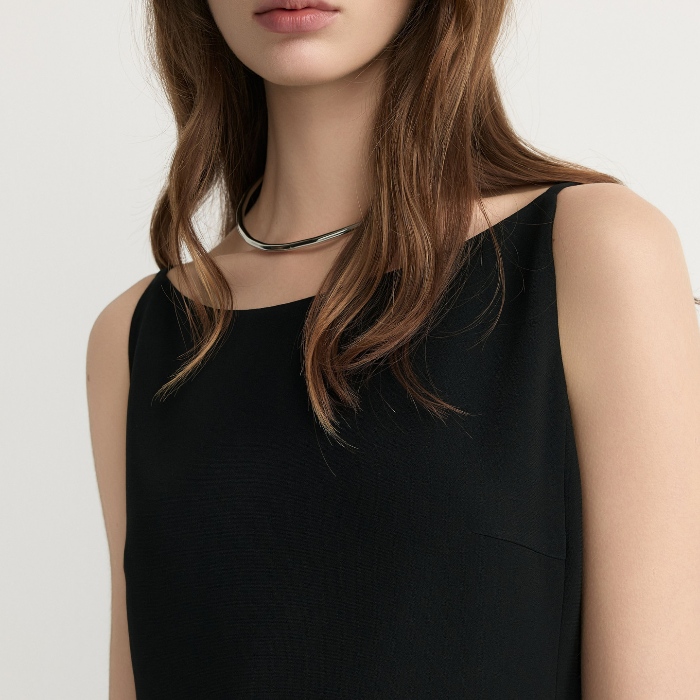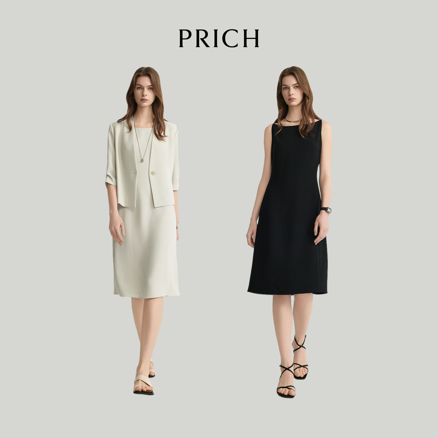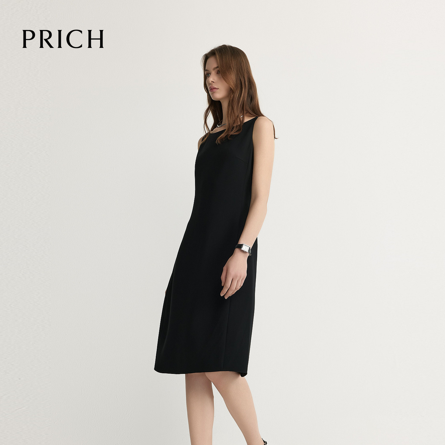 新款 PRICH简约气质一字领收腰连衣裙2026夏季 垂坠裙子女 醋酸