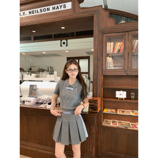 BLUE 外套百褶裙学院风套装 格林诗集 绵羊毛开衫 菱格针织短袖