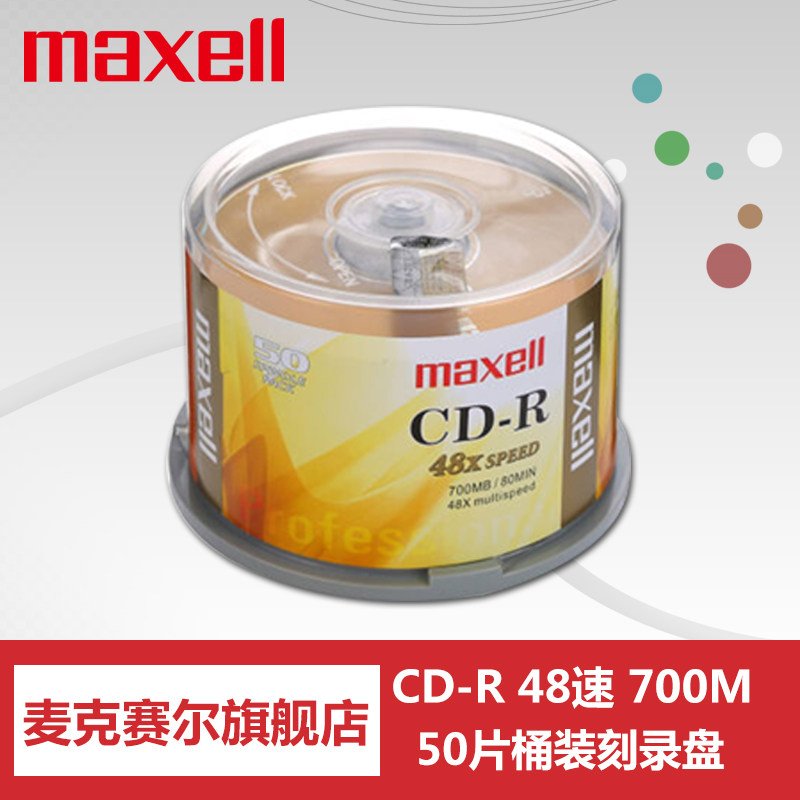 商务金盘桶装 日本Maxell麦克赛尔CD 700M 52速 50片 R光盘刻录光盘光碟空白光盘48速